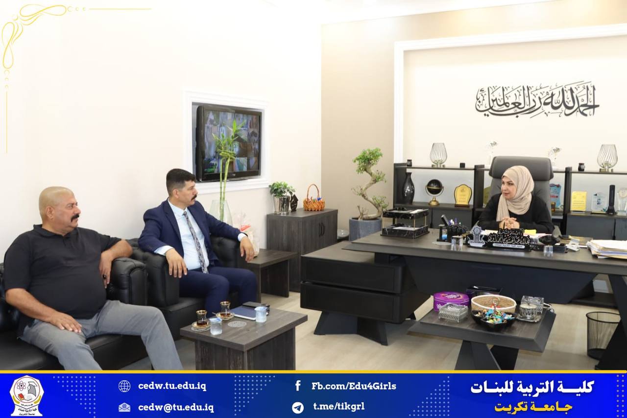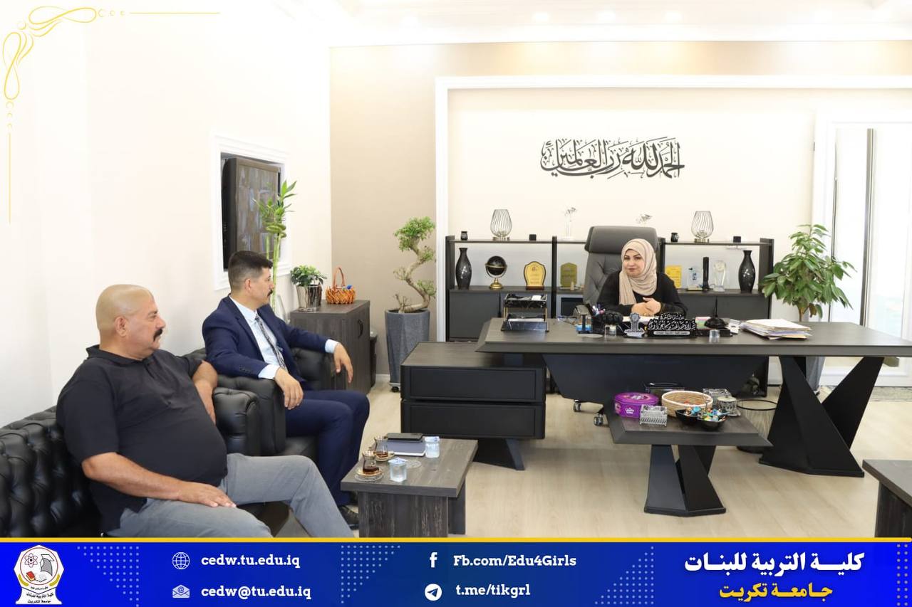 زار وفد من مديرية الامن الوطني فرع صلاح الدين كلية التربية للبنات صباح يوم الاثنين الموافق 5/ 8/ 2024 لغرض رسم خطة سنوية للتعاون المشترك بين المؤسسة الامنية في المحافظةوالكلية من خلال اقامة عدد من الدورات والندوات والورش فضلا عن التخطيط لمؤتمر سنوي تعنى بموضوعات تتعلق بالسلم الاهلي ووالمجتمعي ونبذ التطرف ومكافحة آفات المجتمع كافة