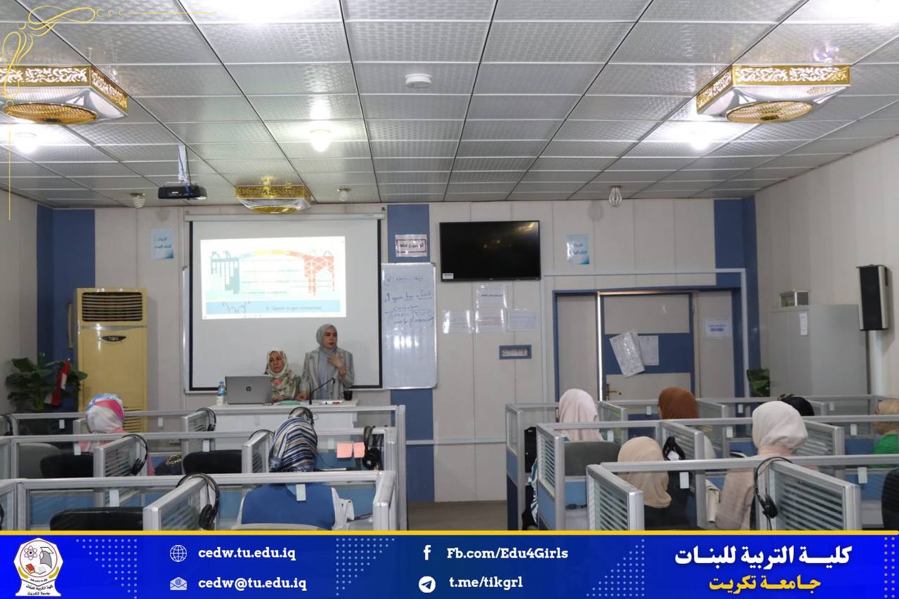 برعاية الأستاذ الدكتور وعد محمود رؤوف المحترم رئيس جامعة تكريت وبإشراف الأستاذ الدكتورة نجلاء عبدالحسين عليوي المحترمة عميد كلية التربية للبنات اقامت كلية التربية للبنات قسم اللغة الإنجليزية دورة تدريبية بعنوان :( How To Speak Effectively and Fluently to Communicate in online sessions)