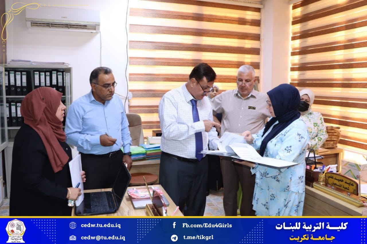 حيث اطلعت اللجنة على الأقسام العلمية في الكلية وواقع حال المختبرات والقاعات الدراسية والكادر التدريسي وأعداد الطالبات في الكلية مع كافة المرافق الأخرى التي من شأنها أن تنهض بواقع الكلية العلمي
