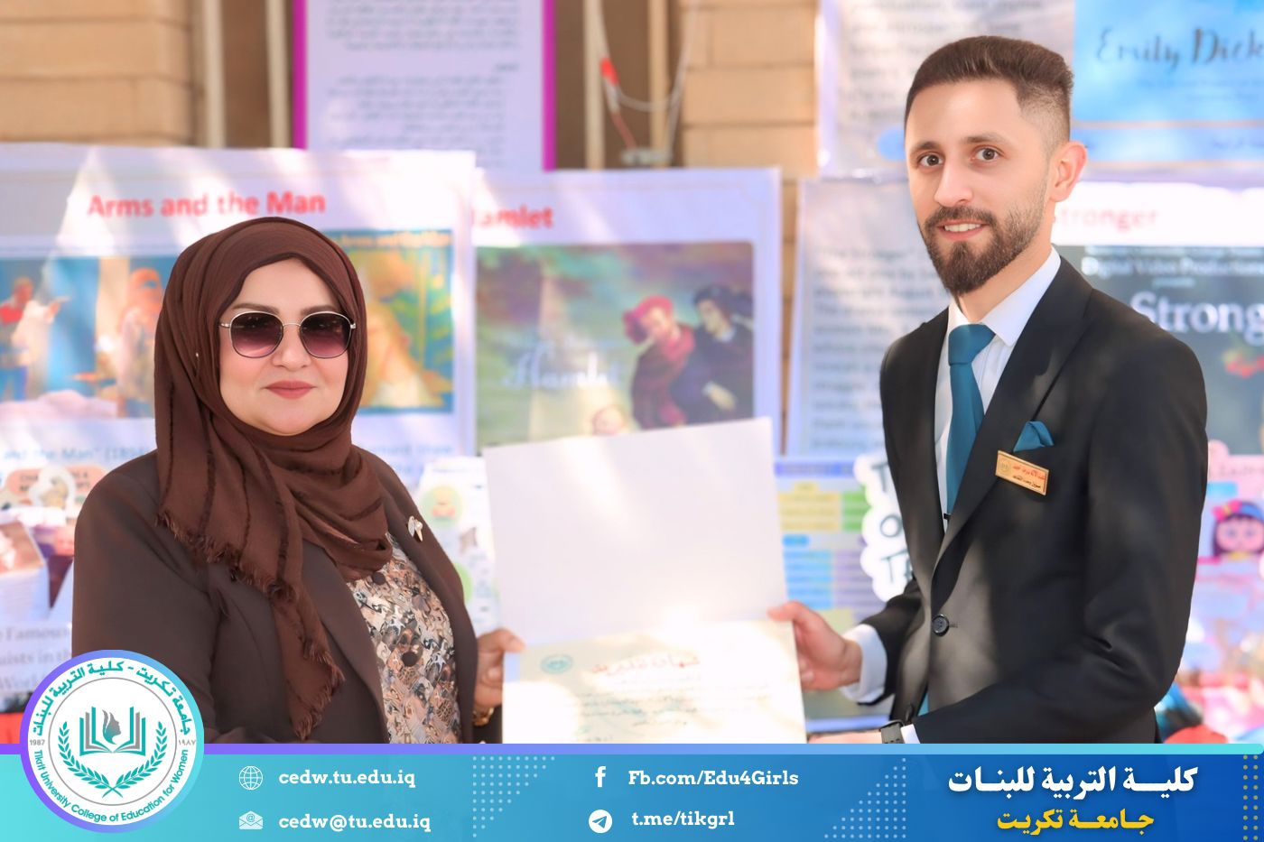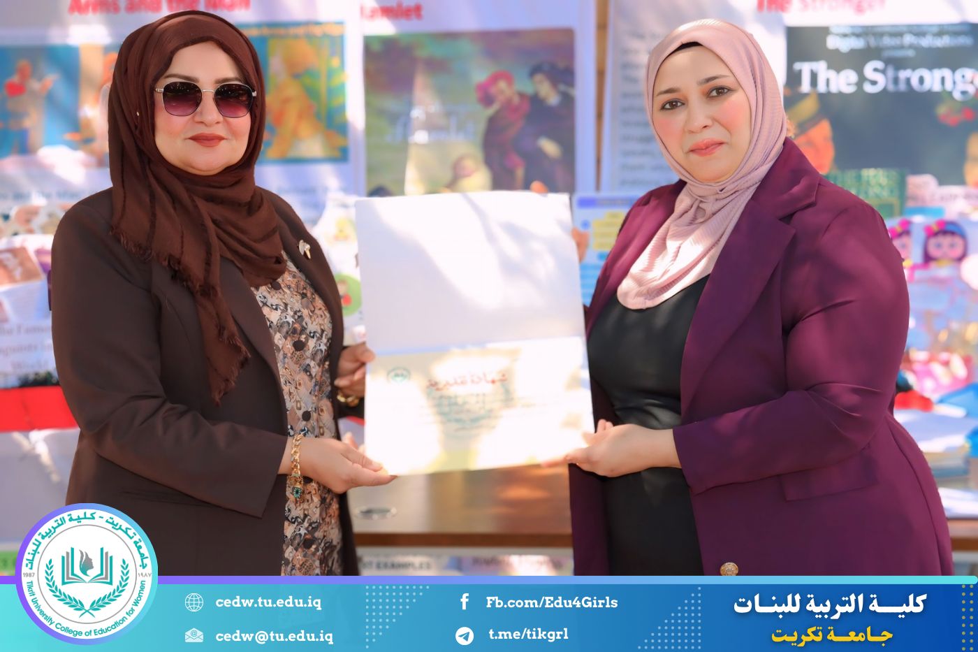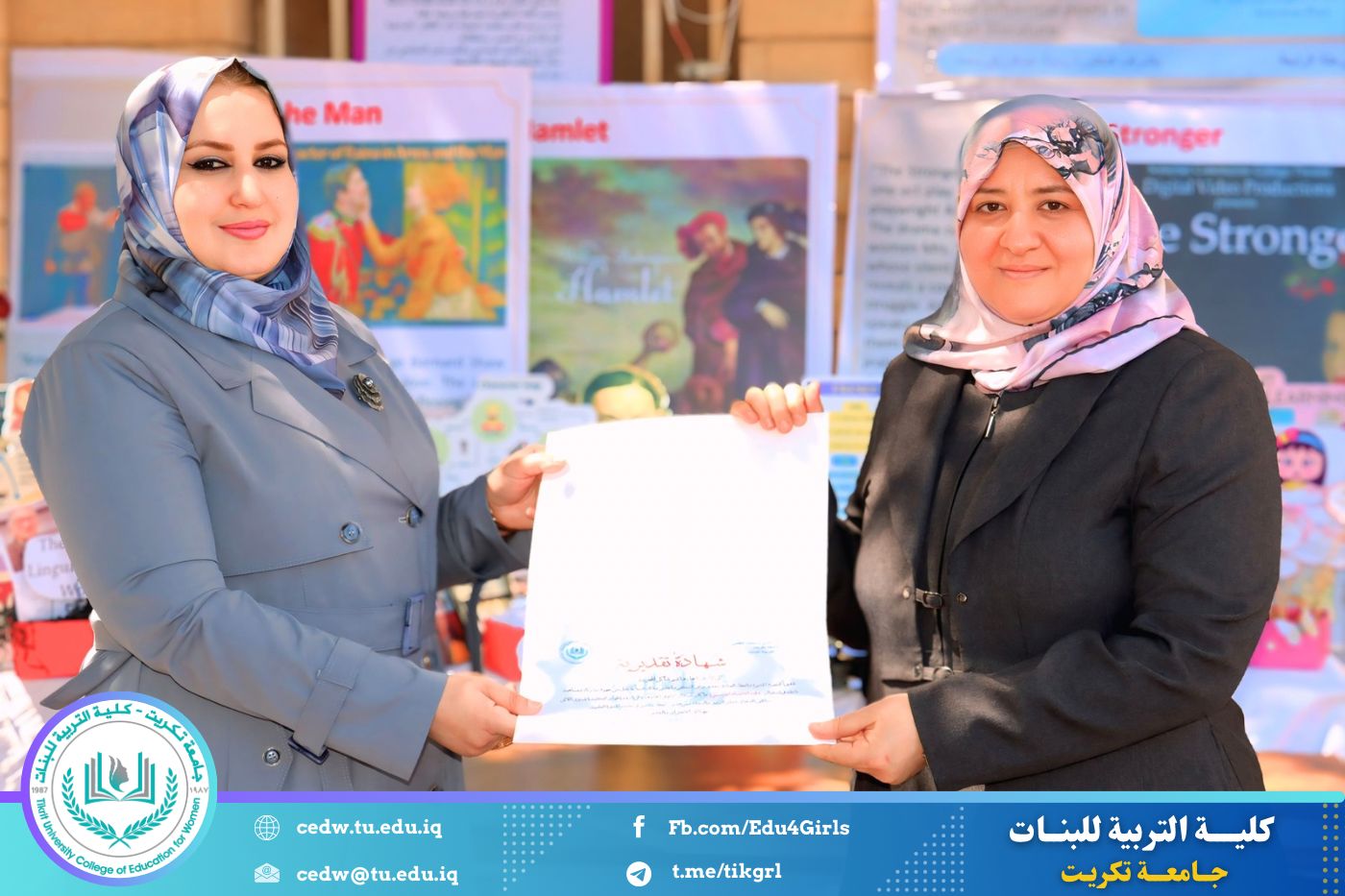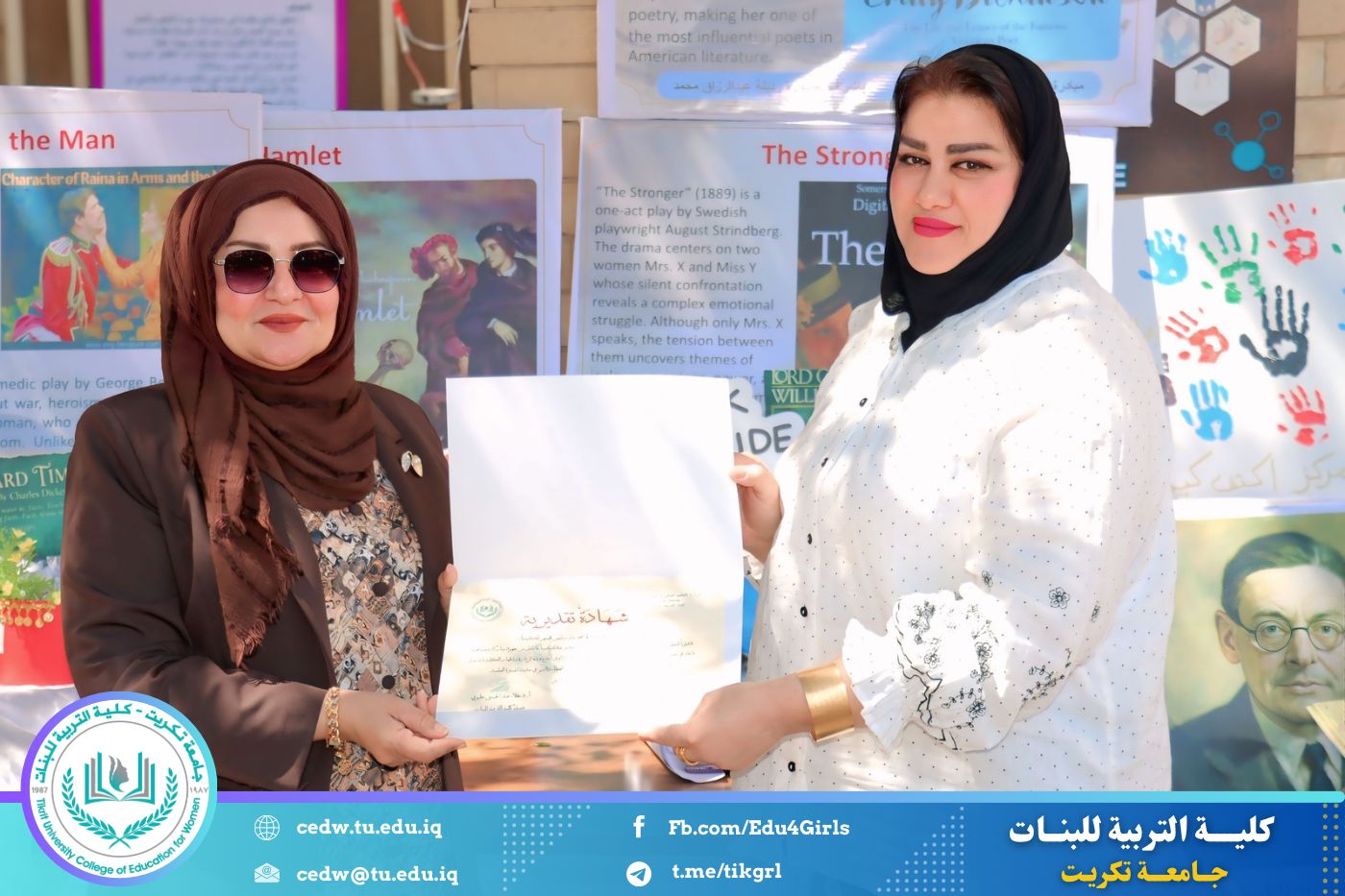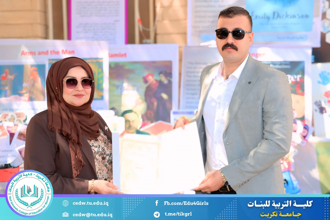 ضمن أجواء احتفالية متميزة، أقامت كلية التربية للبنات في جامعة تكريت فقرة تكريمية شاملة، كرّمت فيها نخبة من اللجان المركزية والفرعية والمساندة للاعتماد البرامجي، إلى جانب رؤساء الأقسام العلمية، ومسؤولي الشعب والوحدات، وأصحاب الألقاب العلمية الحاصلين على الترقيات العلمية، فضلاً عن مسؤولي المختبرات، وذلك بمنحهم كتب شكر وتقدير وشهادات تقديرية، تثميناً لجهودهم وعطائهم المتواصل.