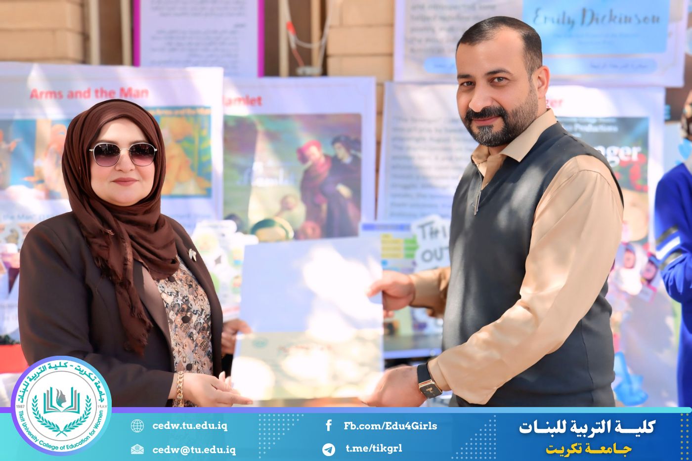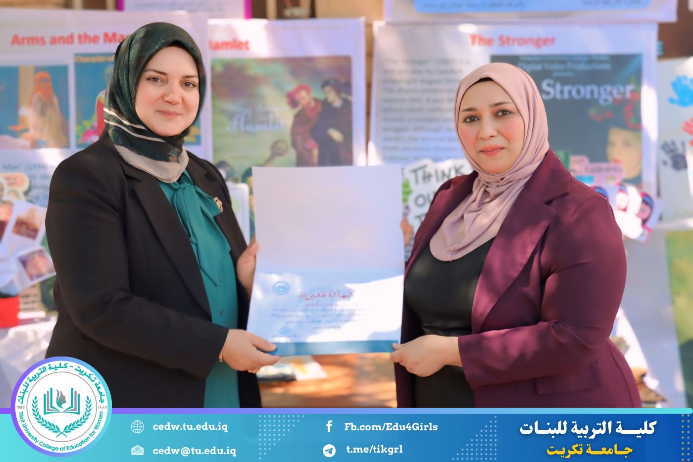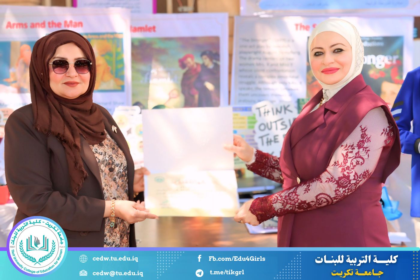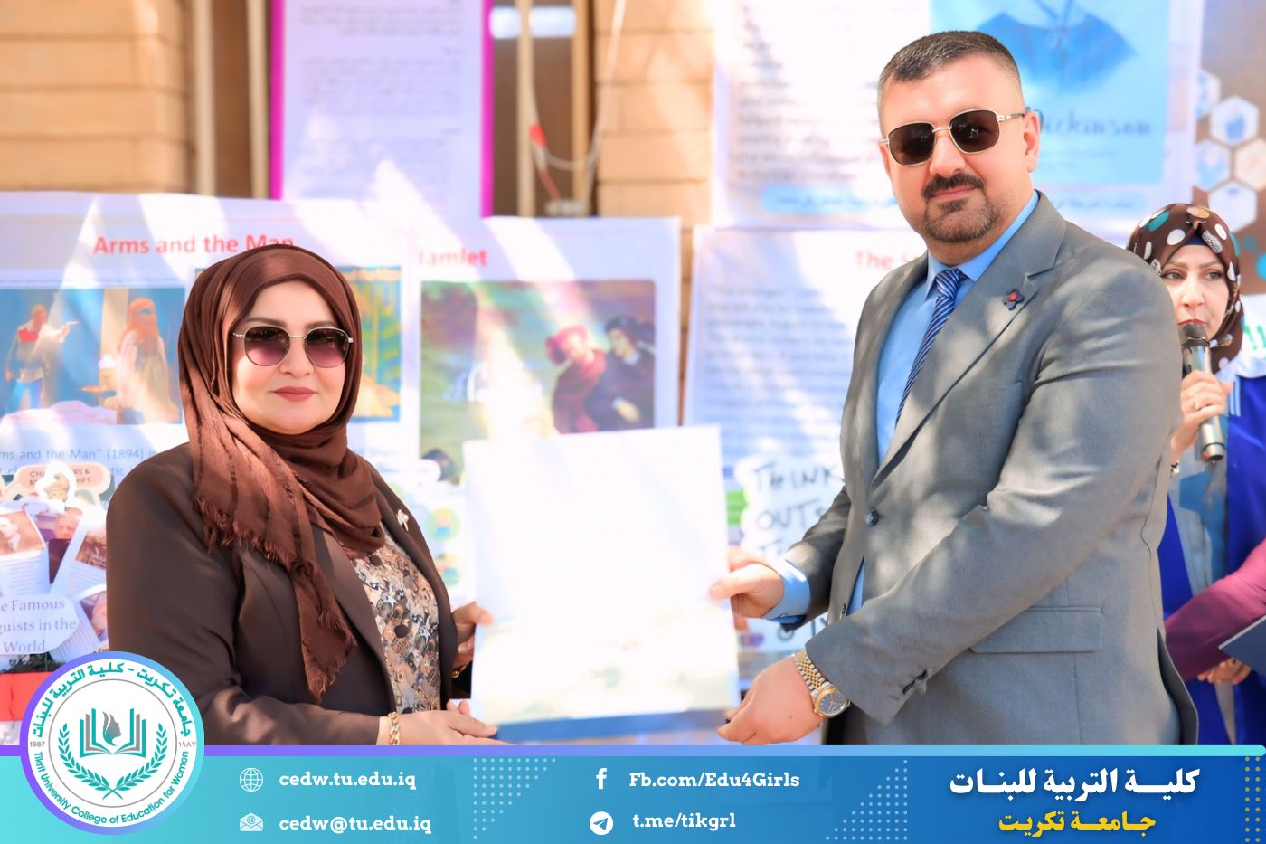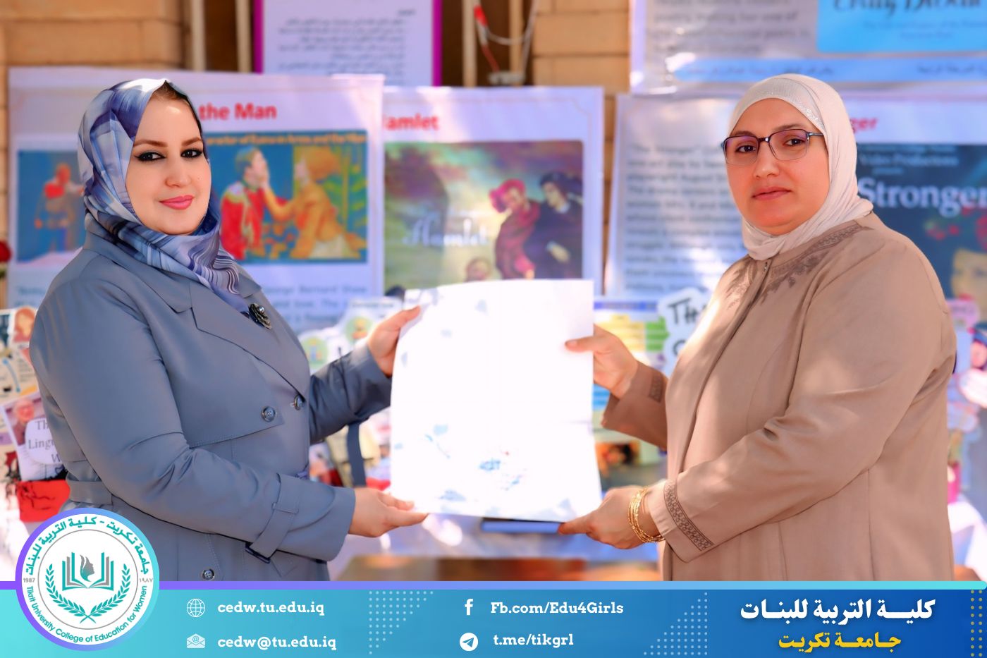 ضمن أجواء احتفالية متميزة، أقامت كلية التربية للبنات في جامعة تكريت فقرة تكريمية شاملة، كرّمت فيها نخبة من اللجان المركزية والفرعية والمساندة للاعتماد البرامجي، إلى جانب رؤساء الأقسام العلمية، ومسؤولي الشعب والوحدات، وأصحاب الألقاب العلمية الحاصلين على الترقيات العلمية، فضلاً عن مسؤولي المختبرات، وذلك بمنحهم كتب شكر وتقدير وشهادات تقديرية، تثميناً لجهودهم وعطائهم المتواصل.