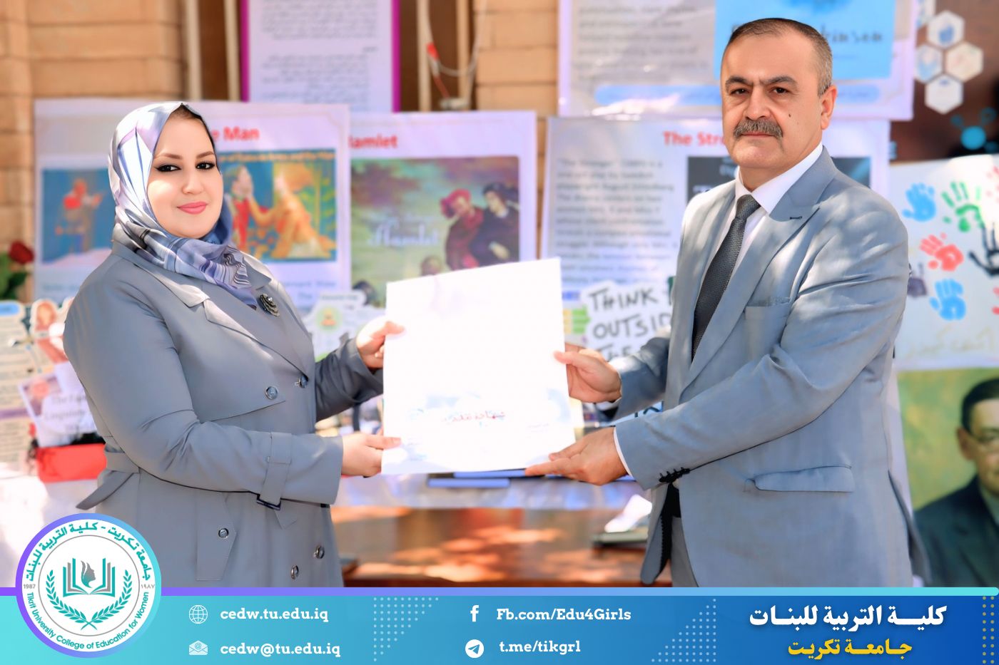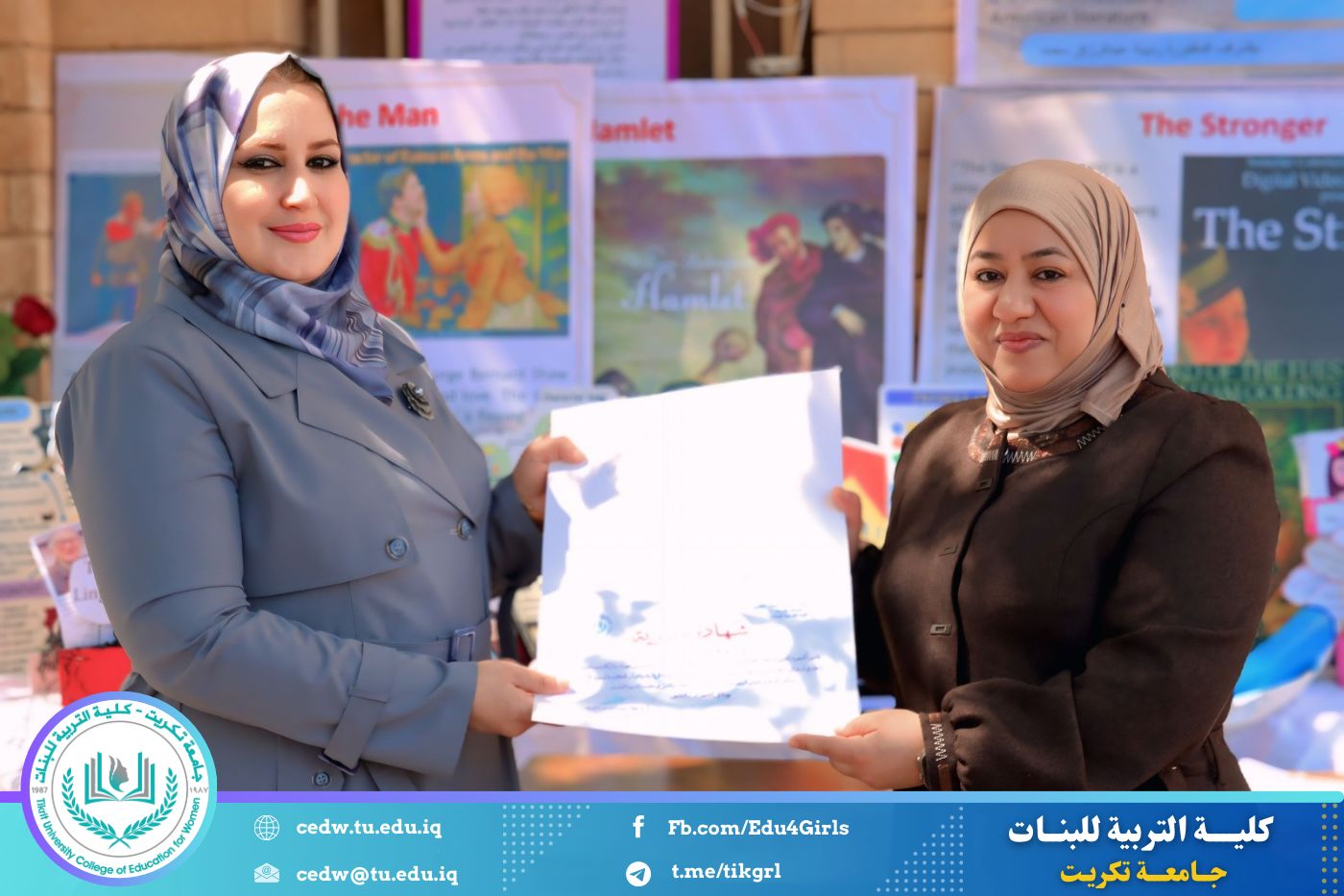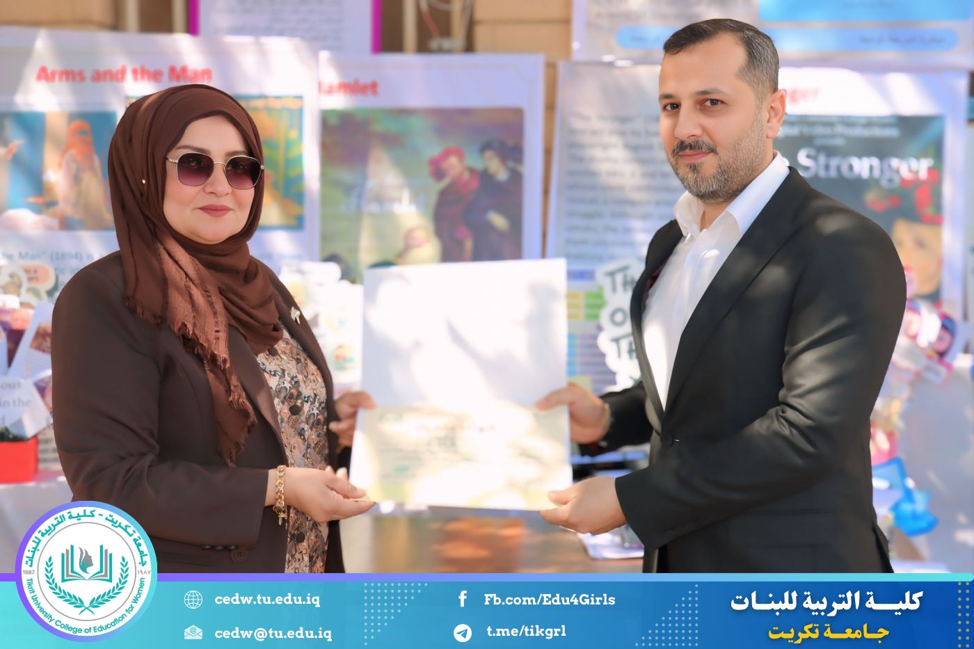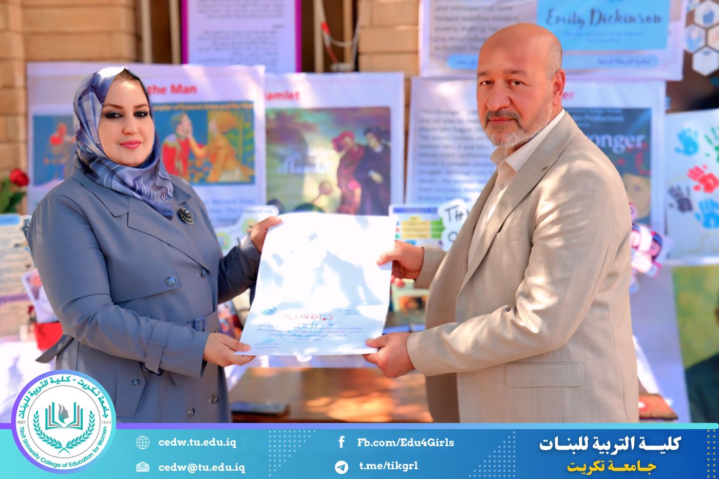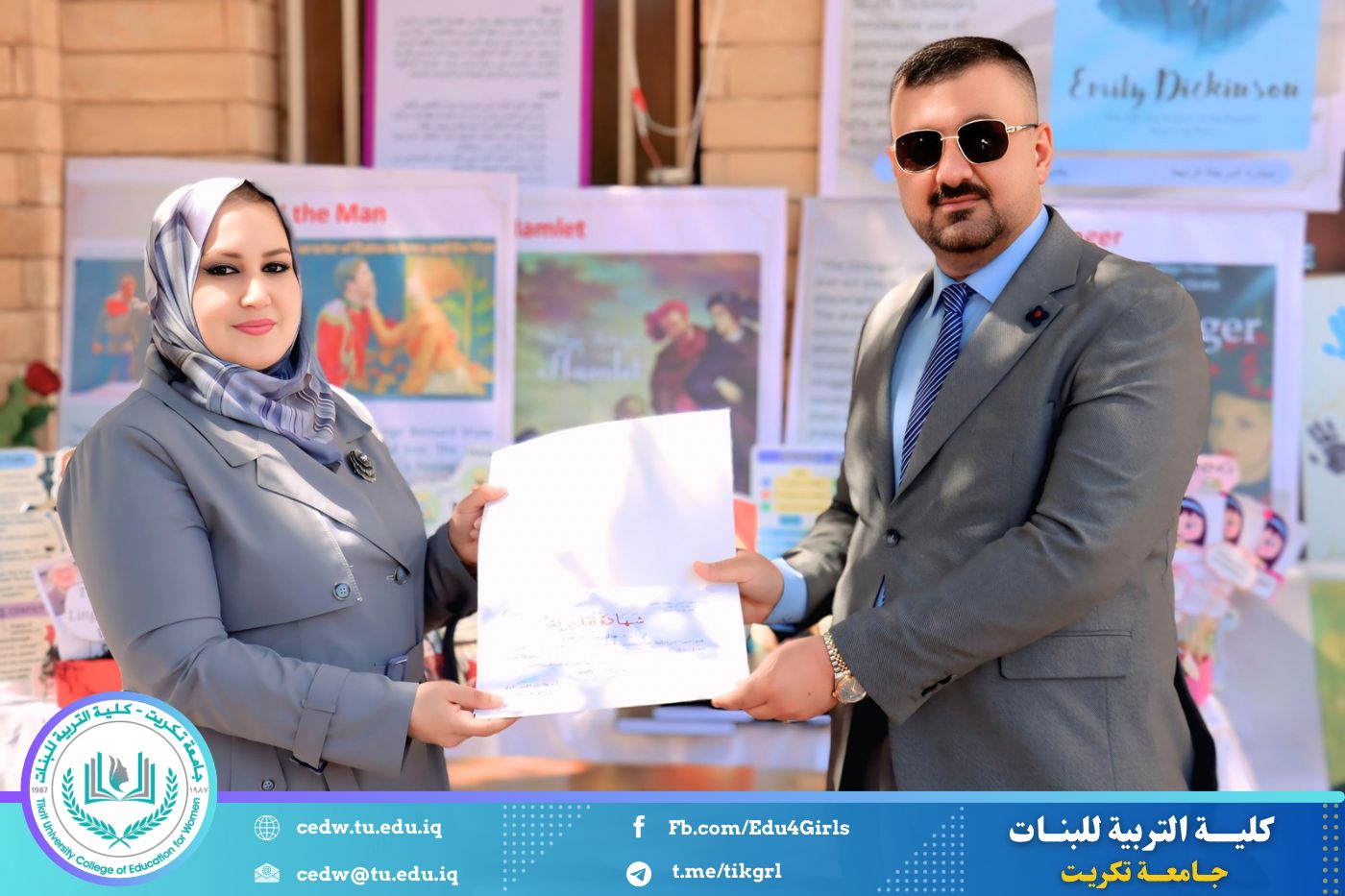 ضمن أجواء احتفالية متميزة، أقامت كلية التربية للبنات في جامعة تكريت فقرة تكريمية شاملة، كرّمت فيها نخبة من اللجان المركزية والفرعية والمساندة للاعتماد البرامجي، إلى جانب رؤساء الأقسام العلمية، ومسؤولي الشعب والوحدات، وأصحاب الألقاب العلمية الحاصلين على الترقيات العلمية، فضلاً عن مسؤولي المختبرات، وذلك بمنحهم كتب شكر وتقدير وشهادات تقديرية، تثميناً لجهودهم وعطائهم المتواصل.