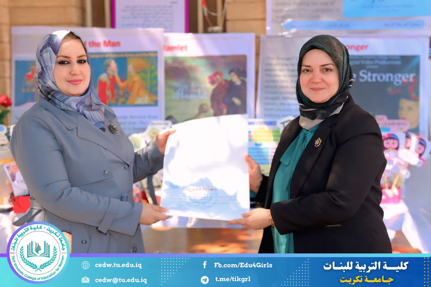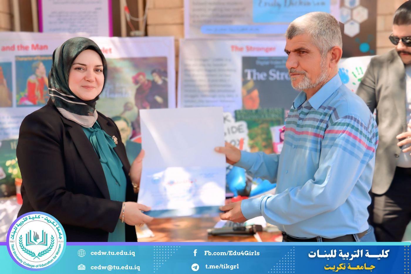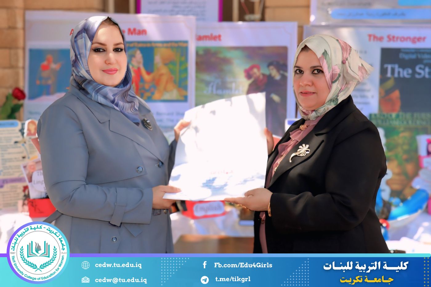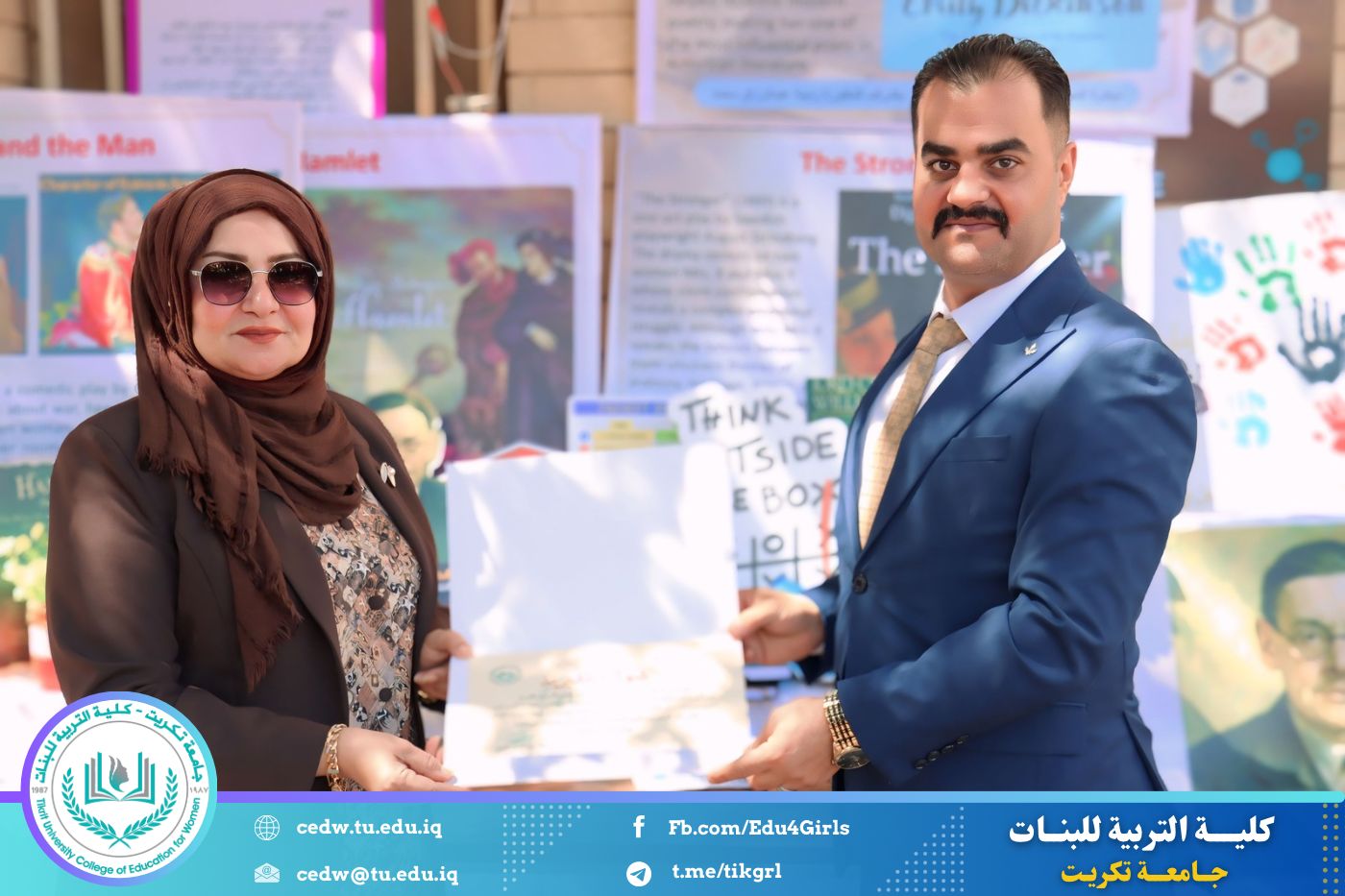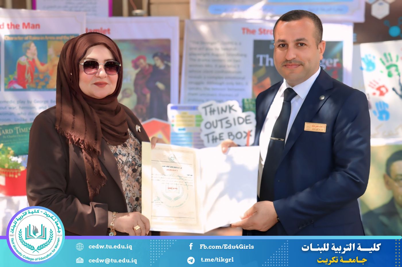 ضمن أجواء احتفالية متميزة، أقامت كلية التربية للبنات في جامعة تكريت فقرة تكريمية شاملة، كرّمت فيها نخبة من اللجان المركزية والفرعية والمساندة للاعتماد البرامجي، إلى جانب رؤساء الأقسام العلمية، ومسؤولي الشعب والوحدات، وأصحاب الألقاب العلمية الحاصلين على الترقيات العلمية، فضلاً عن مسؤولي المختبرات، وذلك بمنحهم كتب شكر وتقدير وشهادات تقديرية، تثميناً لجهودهم وعطائهم المتواصل.