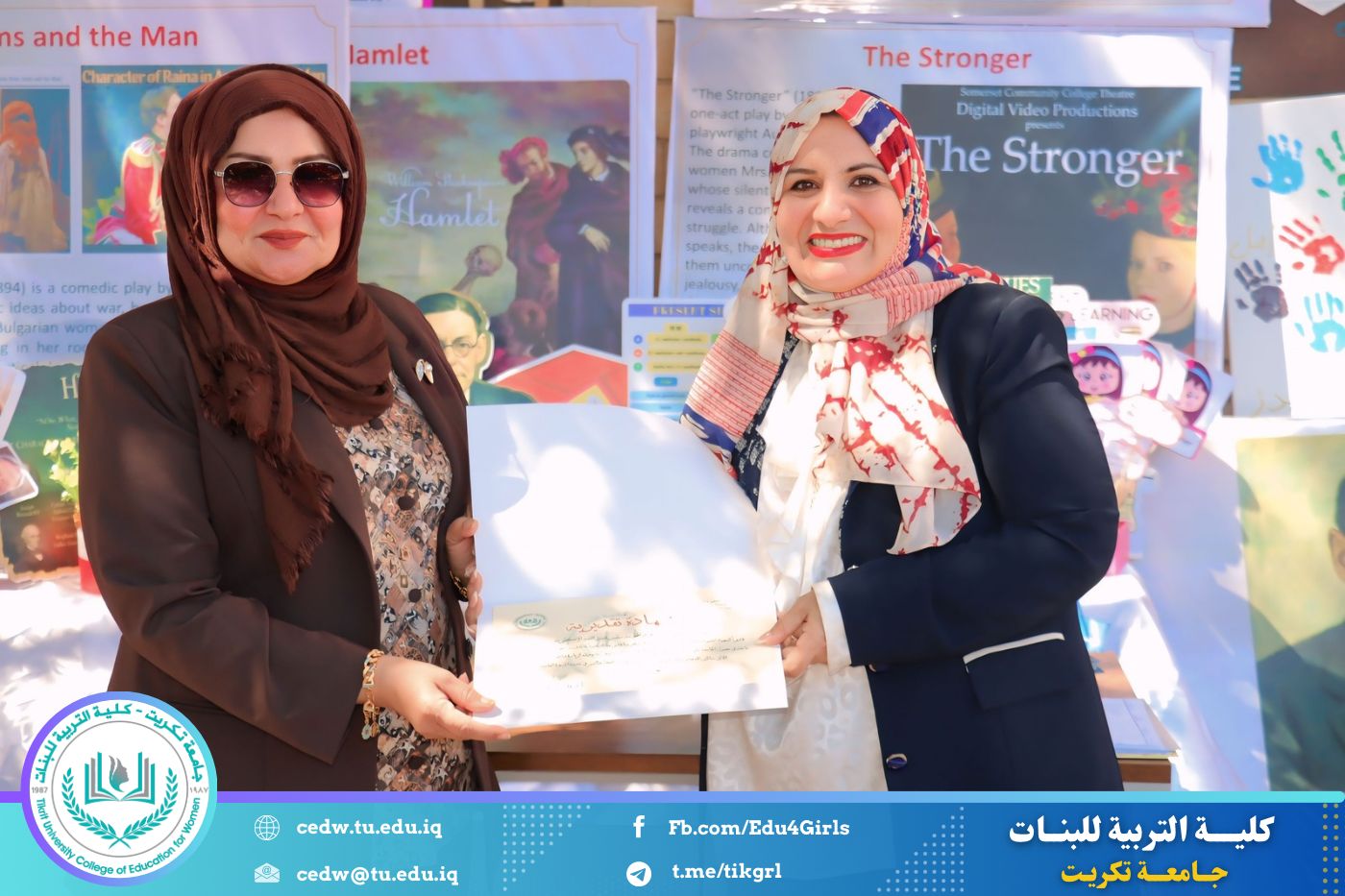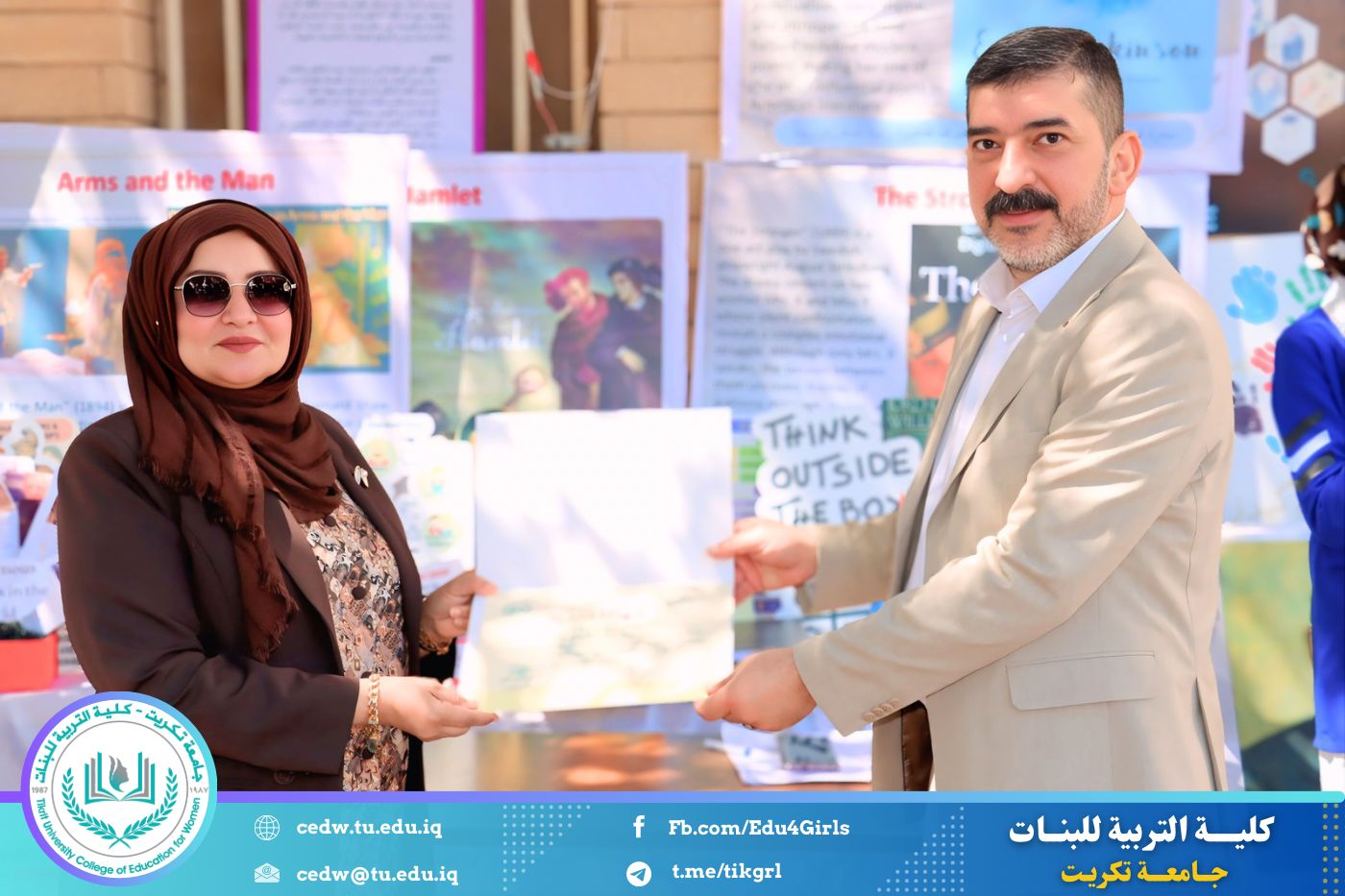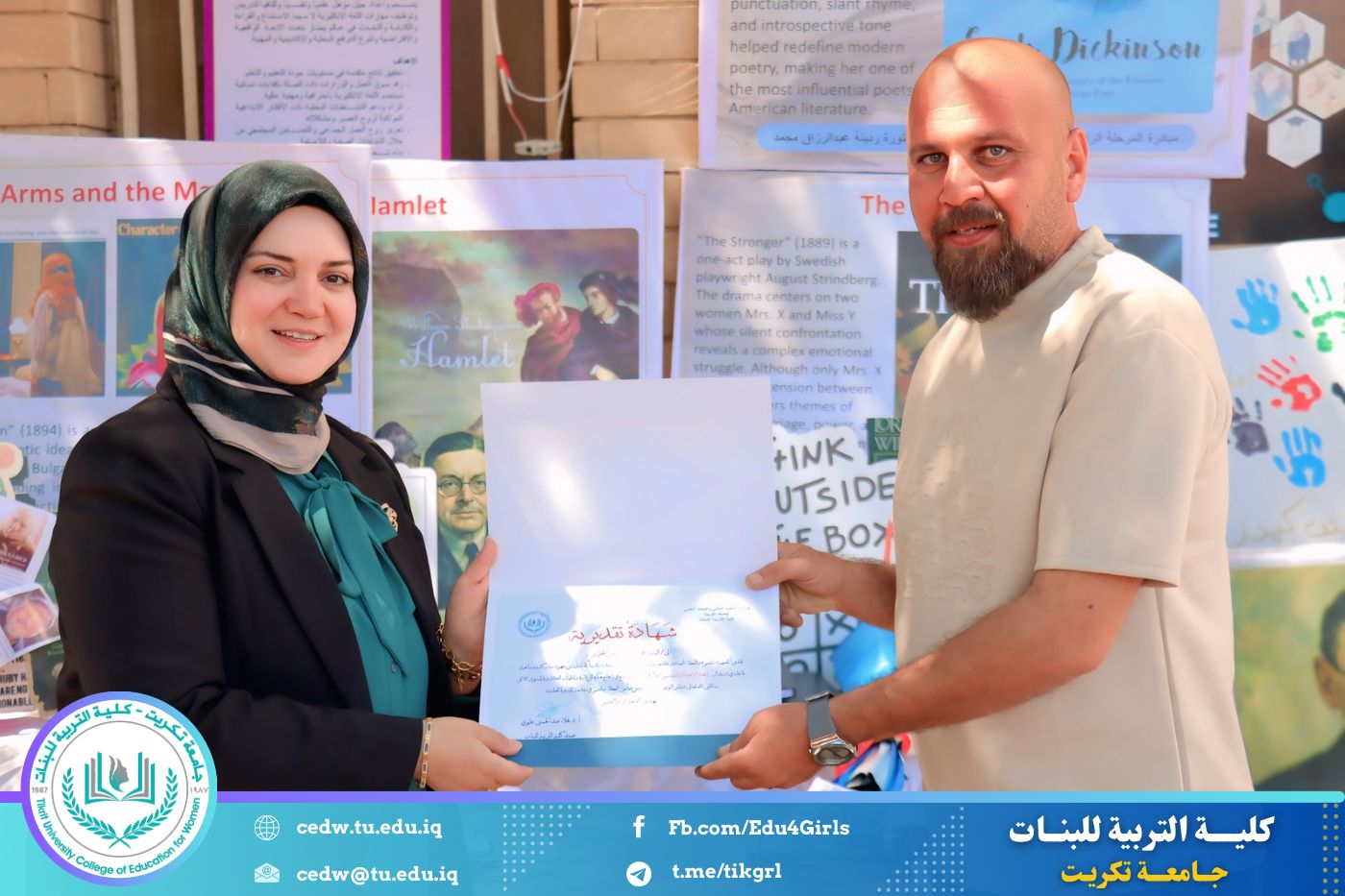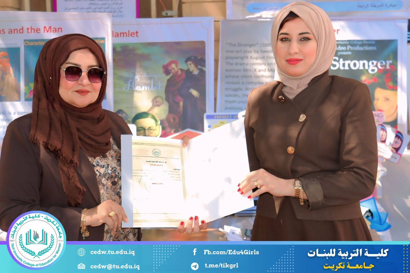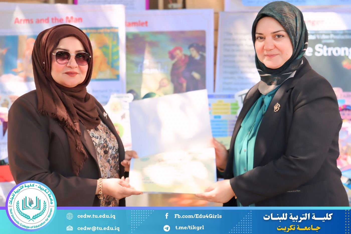 ضمن أجواء احتفالية متميزة، أقامت كلية التربية للبنات في جامعة تكريت فقرة تكريمية شاملة، كرّمت فيها نخبة من اللجان المركزية والفرعية والمساندة للاعتماد البرامجي، إلى جانب رؤساء الأقسام العلمية، ومسؤولي الشعب والوحدات، وأصحاب الألقاب العلمية الحاصلين على الترقيات العلمية، فضلاً عن مسؤولي المختبرات، وذلك بمنحهم كتب شكر وتقدير وشهادات تقديرية، تثميناً لجهودهم وعطائهم المتواصل.