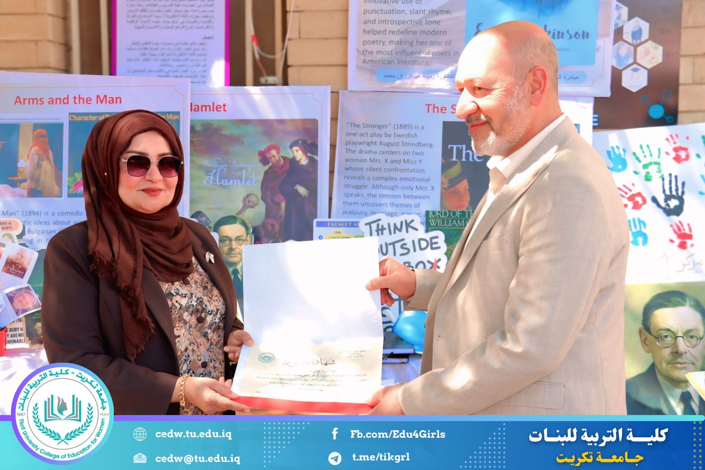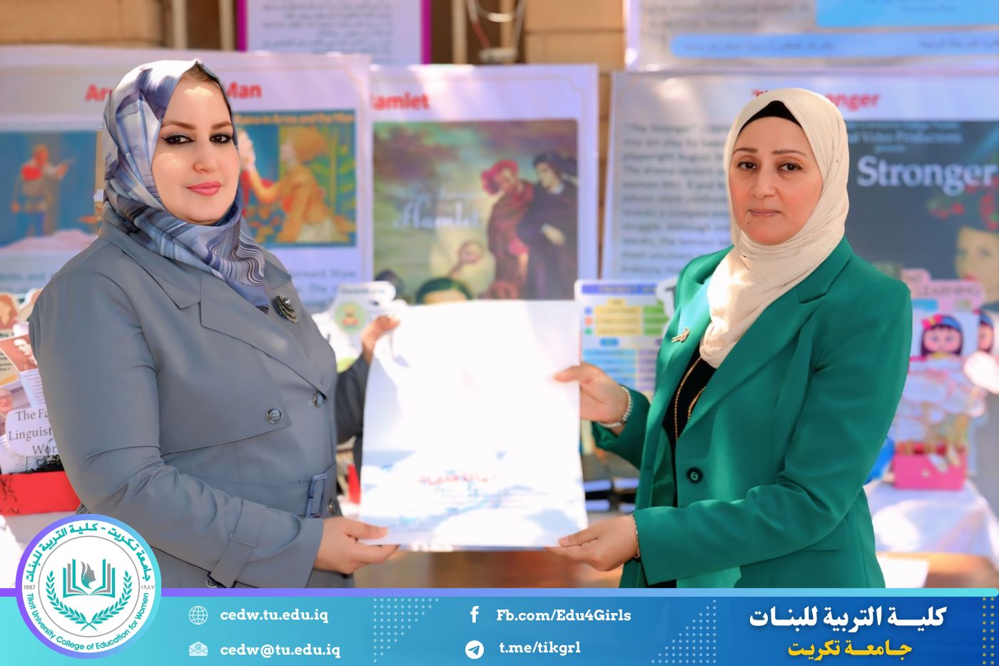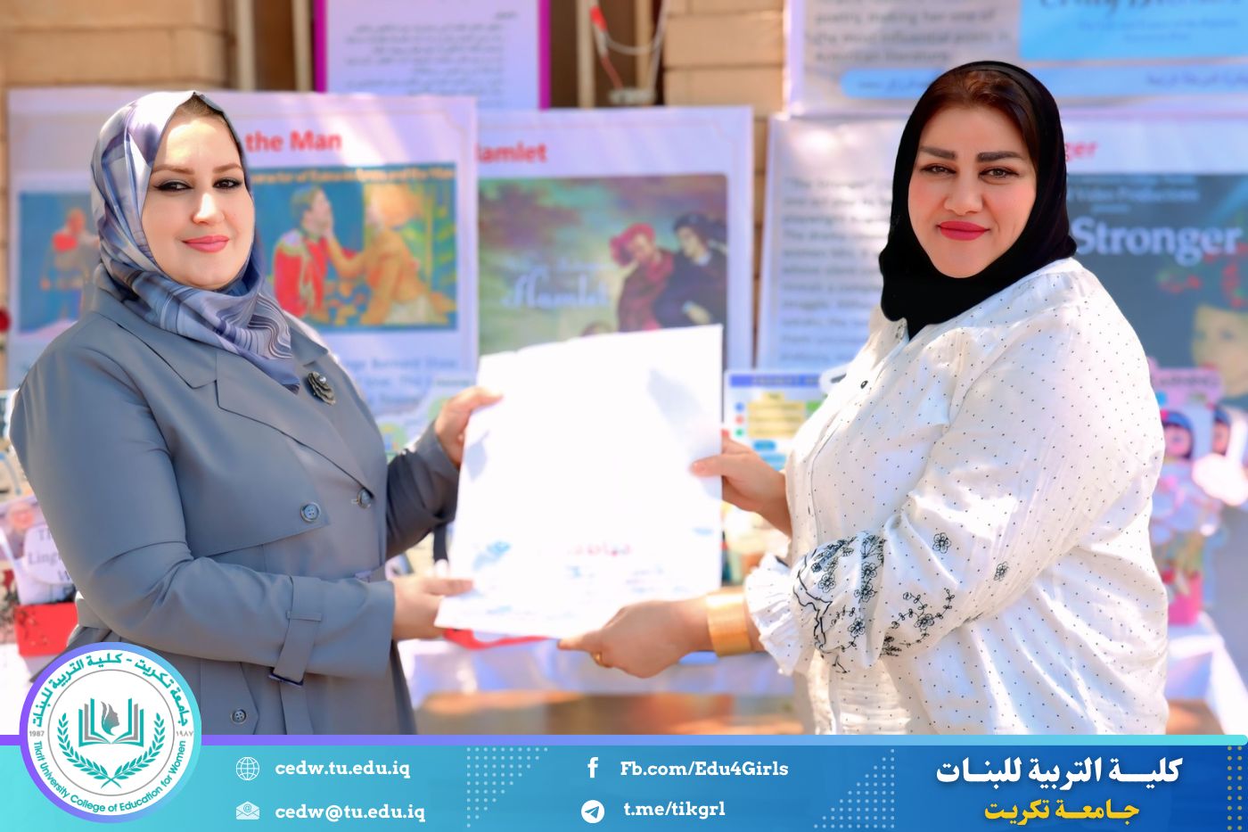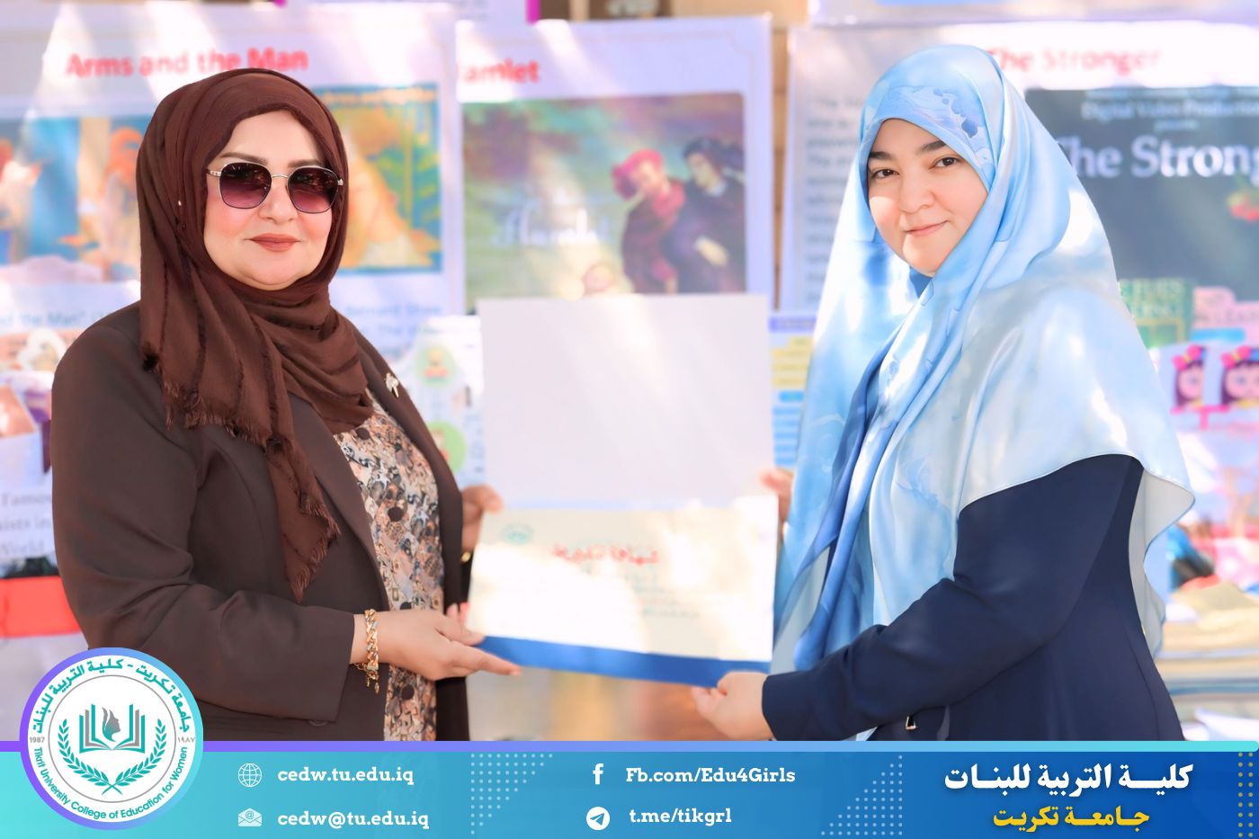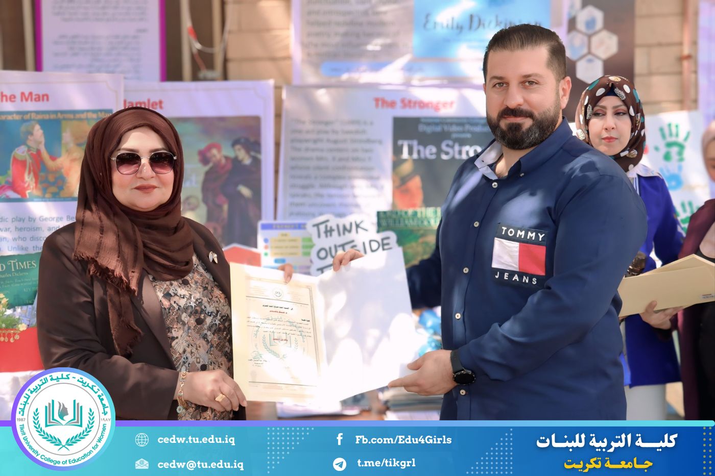 ضمن أجواء احتفالية متميزة، أقامت كلية التربية للبنات في جامعة تكريت فقرة تكريمية شاملة، كرّمت فيها نخبة من اللجان المركزية والفرعية والمساندة للاعتماد البرامجي، إلى جانب رؤساء الأقسام العلمية، ومسؤولي الشعب والوحدات، وأصحاب الألقاب العلمية الحاصلين على الترقيات العلمية، فضلاً عن مسؤولي المختبرات، وذلك بمنحهم كتب شكر وتقدير وشهادات تقديرية، تثميناً لجهودهم وعطائهم المتواصل.