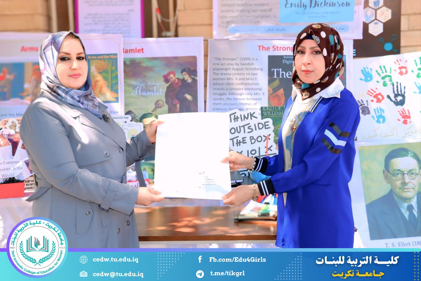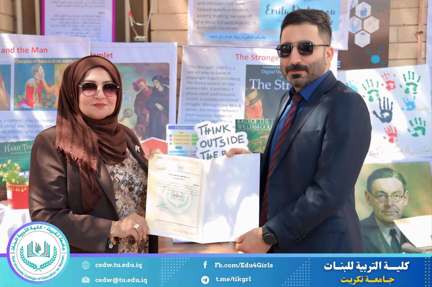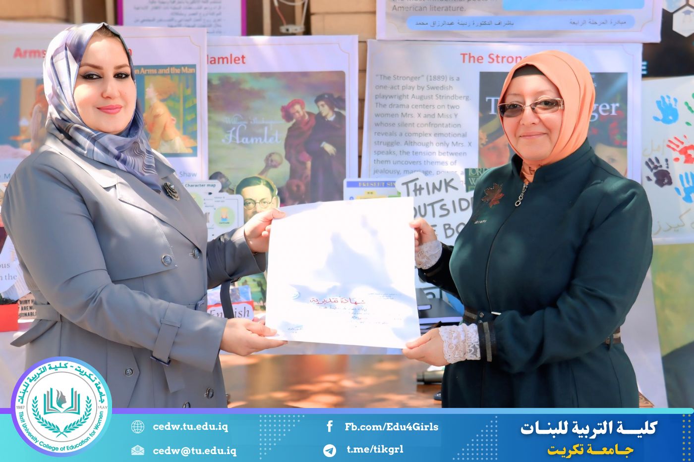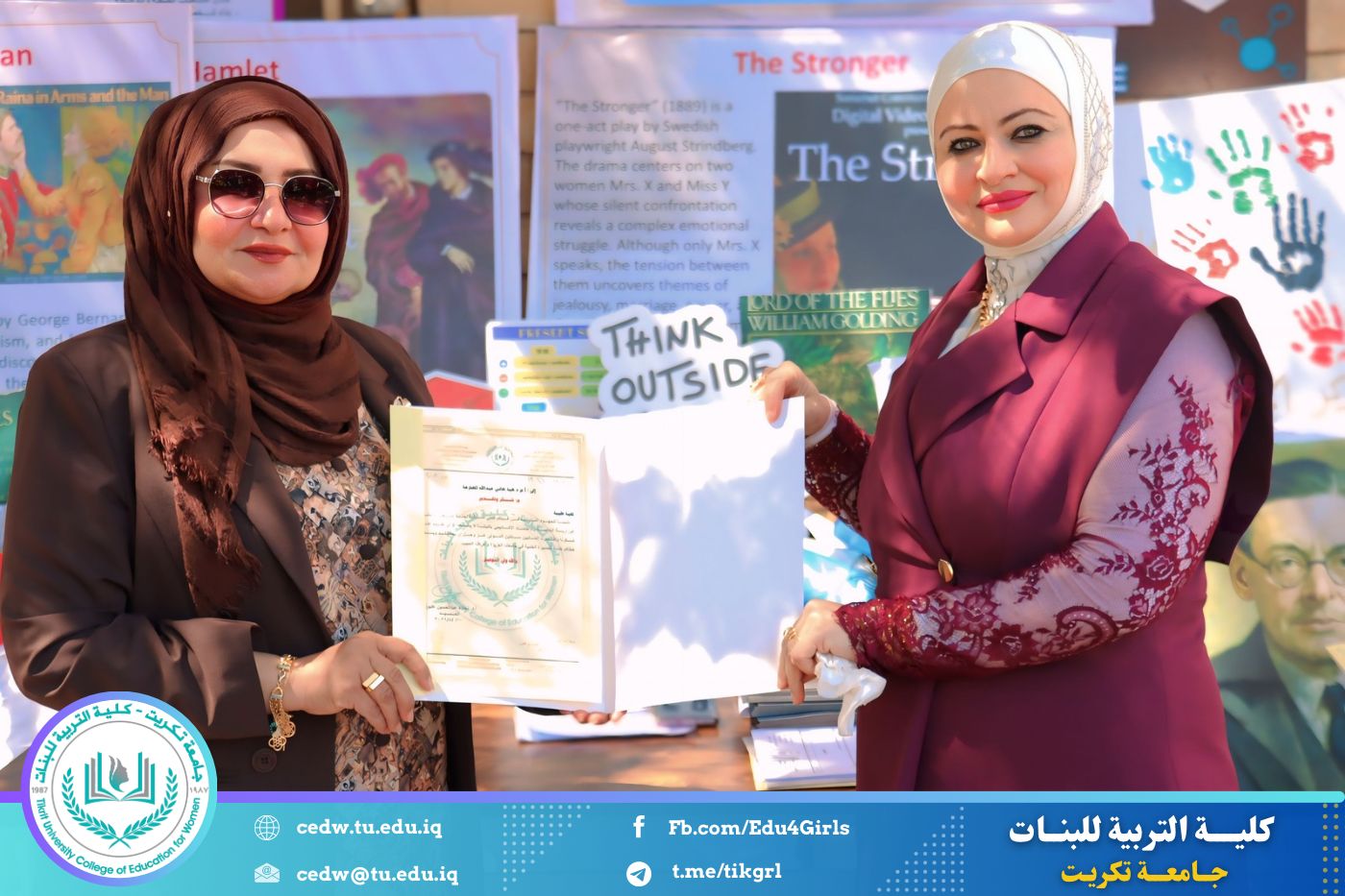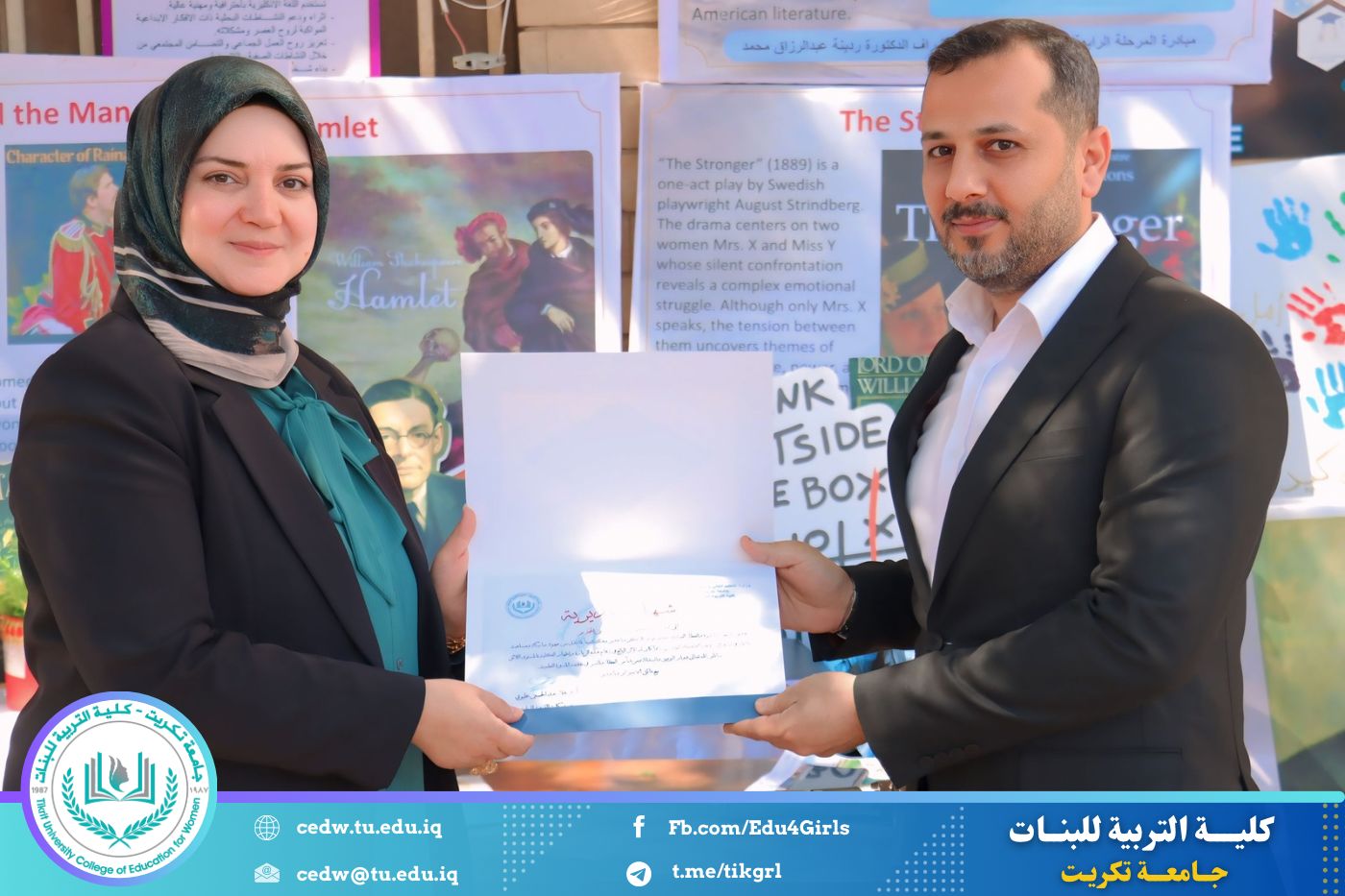 ضمن أجواء احتفالية متميزة، أقامت كلية التربية للبنات في جامعة تكريت فقرة تكريمية شاملة، كرّمت فيها نخبة من اللجان المركزية والفرعية والمساندة للاعتماد البرامجي، إلى جانب رؤساء الأقسام العلمية، ومسؤولي الشعب والوحدات، وأصحاب الألقاب العلمية الحاصلين على الترقيات العلمية، فضلاً عن مسؤولي المختبرات، وذلك بمنحهم كتب شكر وتقدير وشهادات تقديرية، تثميناً لجهودهم وعطائهم المتواصل.
