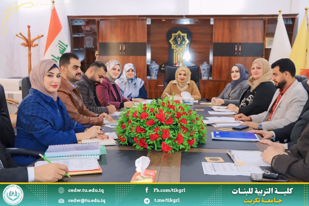 افتتحت السيدة عميد الكلية الجلسة بترحيبها بالحضور الكريم متمنية للجميع الموفقية في أداء مهام عملهم خدمة لكليتنا وحرصا على نجاح المسيرة العلمية فيها
