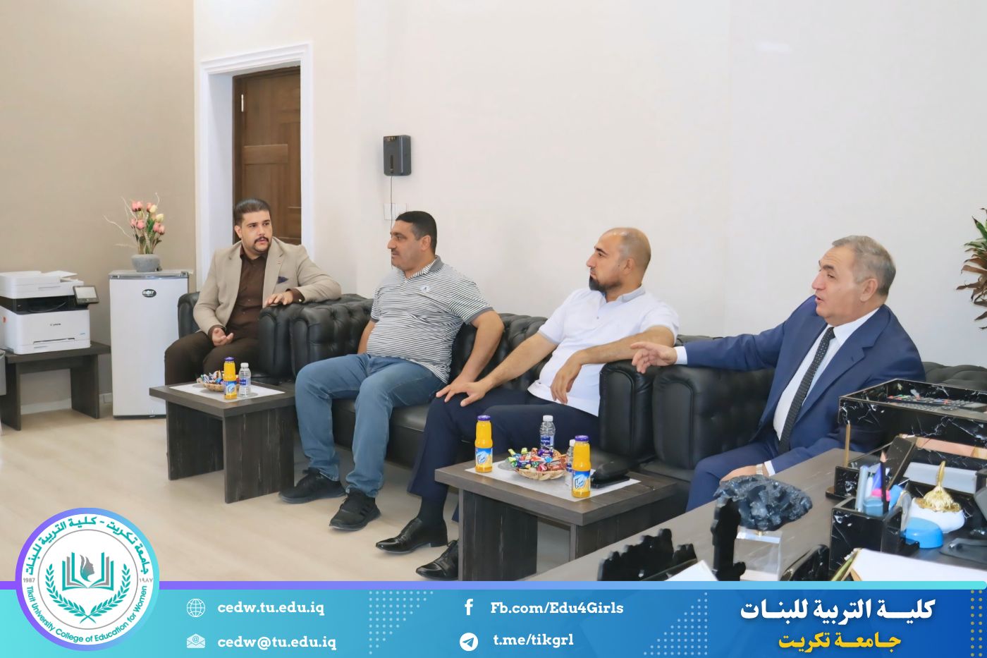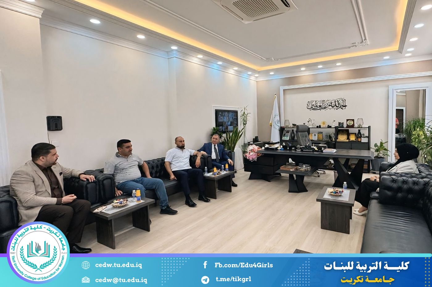 استقبلت الأستاذ الدكتورة نجلاء عبدالحسين عليوي، عميد كلية التربية للبنات – جامعة تكريت، صباح يوم الخميس الموافق ٢٨ آب ٢٠٢٥، في مكتبها، الأستاذ الدكتور علي صالح حسين، رئيس الجامعة العراقية، والوفد المرافق له.