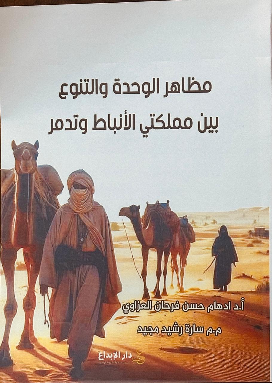 ضمن النشاطات العلمية المتميزة لأساتذة كلية التربية للبنات، صدر حديثاً عن دار الابداع للطباعة والنشر والتوزيع المؤلف الخامس للاستاذ الدكتور ادهم حسين فرحان من قسم التأريخ كلية التربية للبنات والموسوم " مظاهر الوحدة والتنوع بين مملكتي الأنباط وتدمر " بالاشتراك مع المدرس المساعد سارة رشيد مجيد من وزارة التربية.