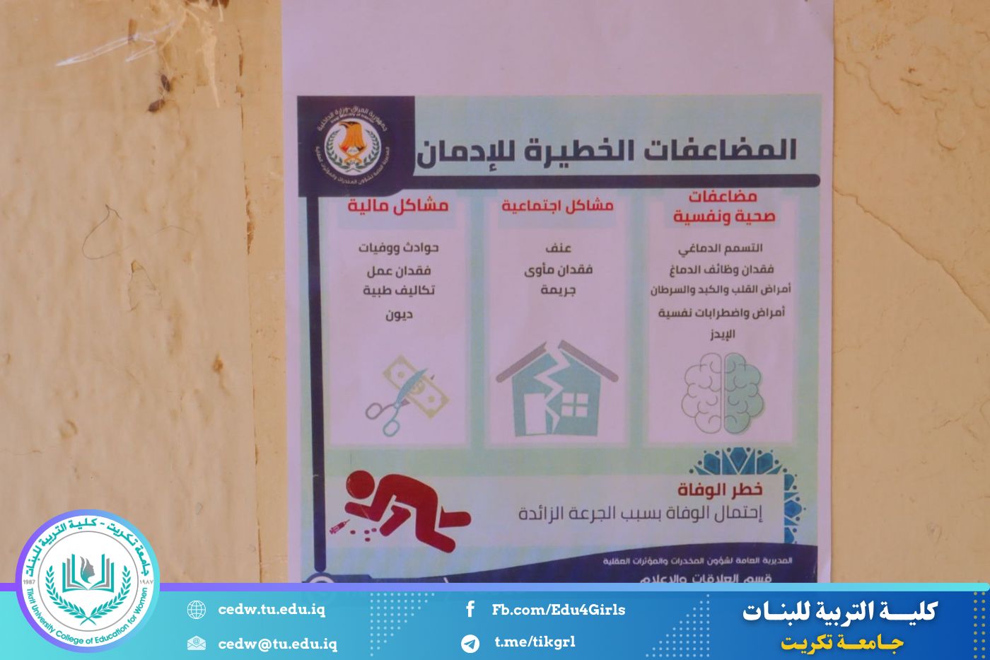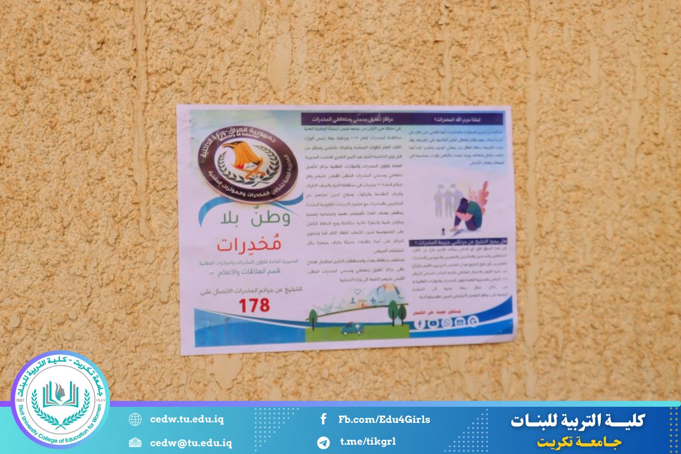 وشملت الحملة توزيع بوسترات إرشادية في أروقة الكلية، تضمّنت رسائل توعوية تسلّط الضوء على مخاطر تعاطي المخدرات وتأثيراتها السلبية الصحية والنفسية والاجتماعية، فضلاً عن بيان العقوبات القانونية المترتبة على هذه الآفة، والتأكيد على أهمية الإبلاغ عن الحالات المشبوهة والتعاون مع الجهات المختصة.