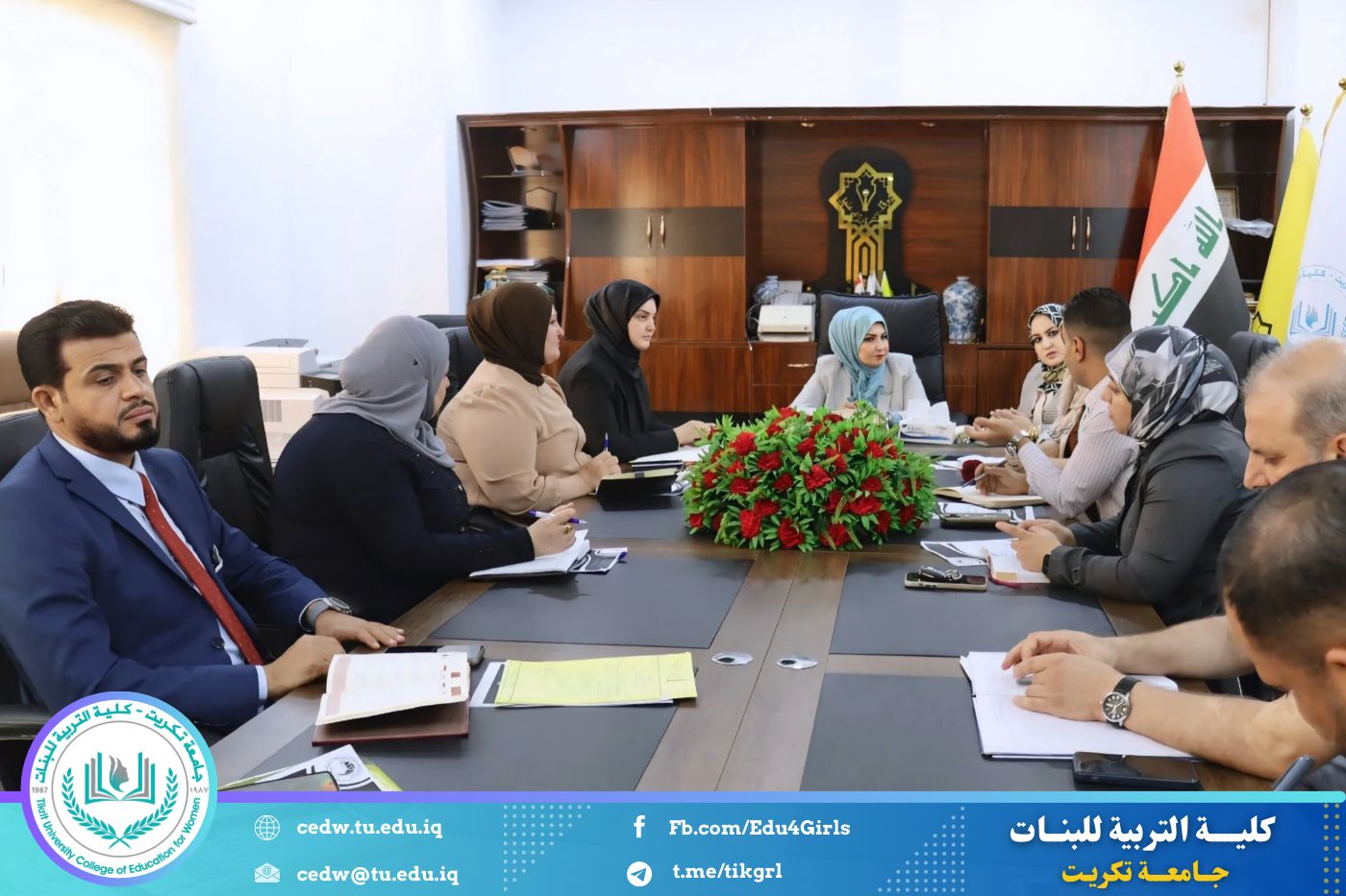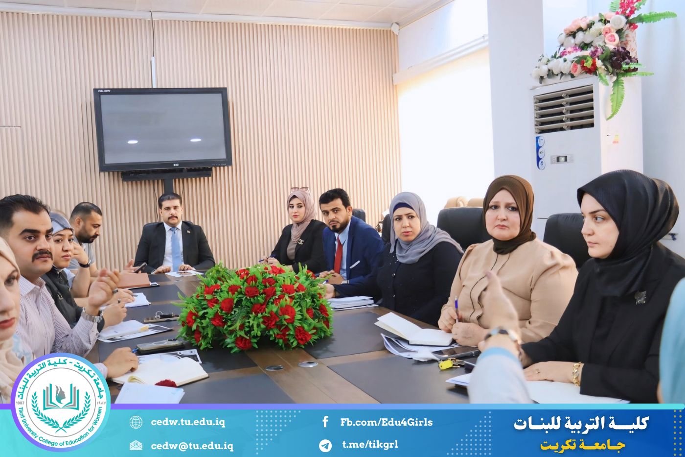 عقد مجلس كلية التربية للبنات – جامعة تكريت، صباح يوم الأحد الموافق ٣١ تموز ٢٠٢٥، جلسته الخامسة والأربعين برئاسة الأستاذ الدكتورة نجلاء عبدالحسين عليوي، عميد الكلية ورئيس المجلس، وبحضور السادة المعاونين ورؤساء الأقسام العلمية وأعضاء المجلس كافة.