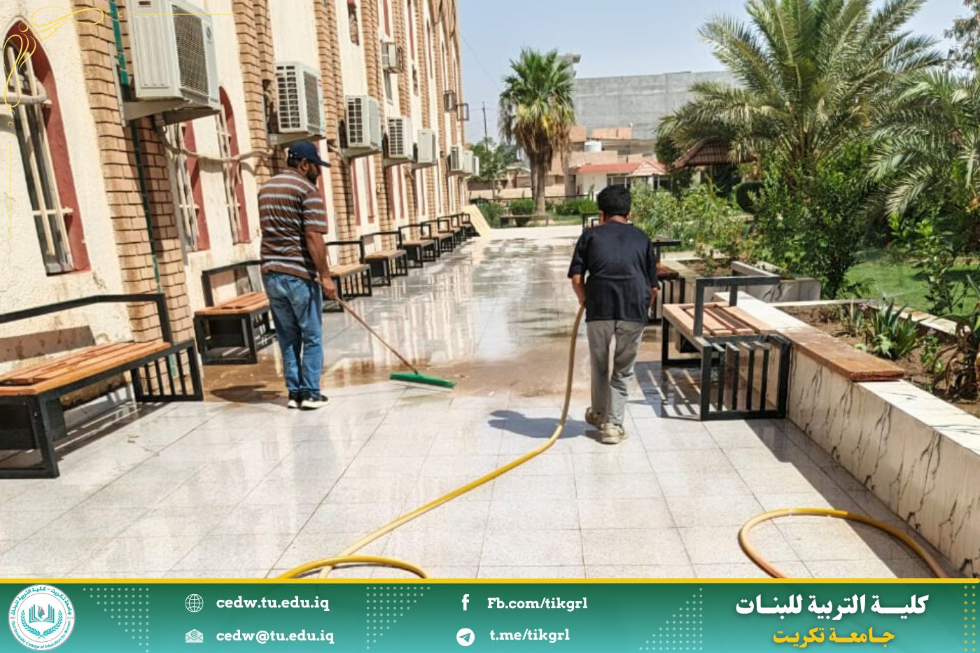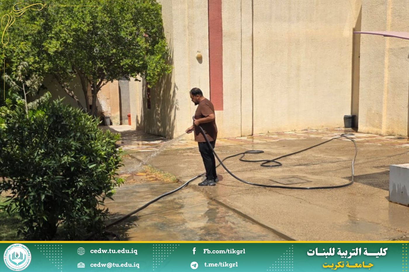 في إطار الجهود الرامية إلى تحسين البيئة الجامعية وتعزيز جودة المرافق التعليمية، وحسب توجيهات السيد رئيس جامعة تكريت الأستاذ الدكتور وعد محمود رؤوف،نفذت كلية التربية للبنات حملة شاملة لتنظيف أروقة الكلية وحدائقها وأرصفتها، في اليوم الاحد الموافق 3/ 8/ 2025 .