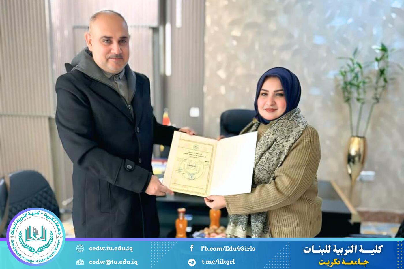 وكان في استقبال اللجنة السيدة عميد كلية التربية للبنات، الأستاذ الدكتورة نجلاء عبد حسين عليوي، والسيدتان معاونات العميد للشؤون العلمية والإدراية ، الأستاذ الدكتورة أشرف جمال محمود، و الأستاذ المساعد الدكتورة سلمى خالد ياسين، والسيدة مسؤولة شعبة الدراسات العليا ، الاستاذ المساعد الدكتورة هبة هاني عبدالله، وعدد من رؤساء الأقسام العلمية وأعضاء الهيئة التدريسية.