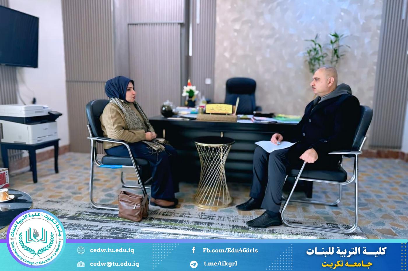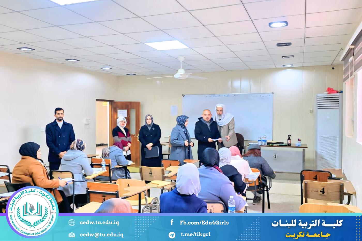 استقبلت كلية التربية للبنات في جامعة تكريت، صباح يوم السبت الموافق 3 / 1 / 2026، اللجنة المركزية المكلفة بمتابعة سير امتحانات طلبة الدراسات العليا للعام الدراسي 2025- 2026 وذلك في إطار جهود الجامعة المستمرة لضمان الالتزام بالمعايير والتعليمات الامتحانية وتوفير بيئة أكاديمية منظمة ومناسبة للطلبة.