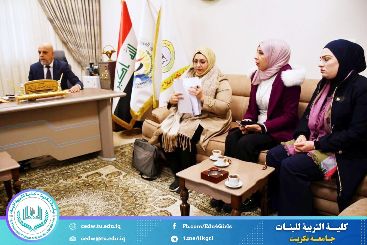 وضمّ وفد كلية التربية للبنات كلاً من مسؤول وحدة شؤون المرأة الأستاذ المساعد الدكتورة سروة عبد القادر محمد صالح، ومسؤول وحدة التأهيل والتوظيف والمتابعة المدرس الدكتورة هالة هاشم دحام، إلى جانب أعضاء ارتباط الوحدتين وهم: المدرس المساعد أريج علي حسين، والمدرس المساعد جهينة تركي شهاب، والمدرس المساعد إسراء مازن حميد.