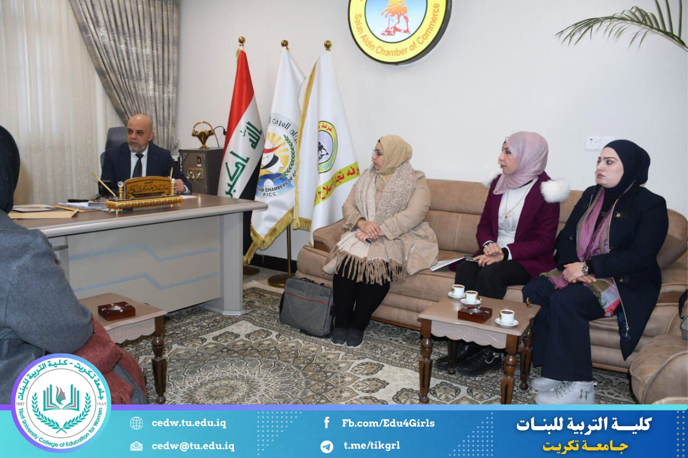 في سياق انفتاح كلية التربية للبنات – جامعة تكريت على المؤسسات الاقتصادية ودعم مسارات تأهيل الخريجات، قام وفد من الكلية بزيارة غرفة تجارة صلاح الدين، بهدف مناقشة فرص التعاون في مجالات التدريب والتأهيل المهني، بما يسهم في تعزيز جاهزية طالبات المرحلة الرابعة والخريجات للاندماج في سوق العمل.