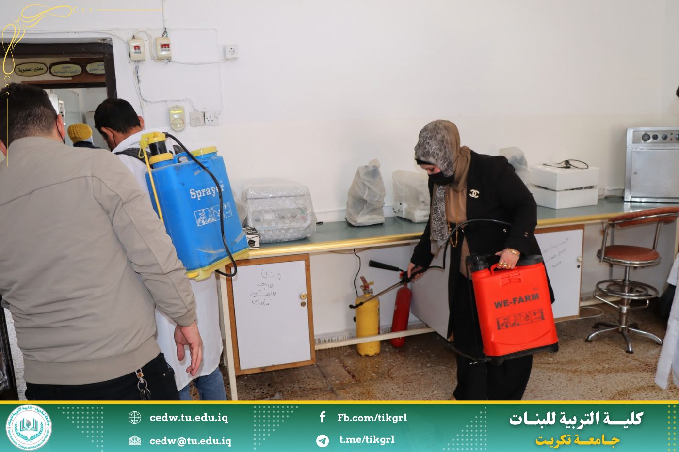 نفذت وحدة شؤون المراة في كلية التربية للبنات بالتعاون مع قسم علوم الحياة في الكلية وبالتعاون مع مديرية زراعة صلاح الدين- قسم الوقاية حملة تعفير للبنايات والمختبرات من القوارض والحشرات في يوم الثلاثاء الموافق 4/ 2/ 2025
