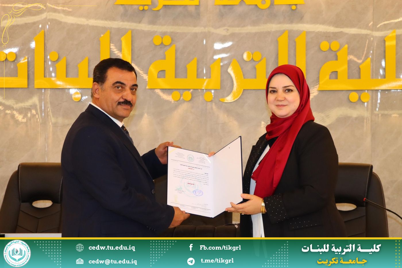 برعاية الأستاذ الدكتور وعد محمود رؤوف رئيس جامعة تكريت وبإشراف الأستاذ الدكتورة نجلاء عبدالحسين عليوي عميد كلية التربية للبنات وبحضور معاوني العميد للشؤون العلمية والإدارية الأستاذ الدكتورة أشرف جمال محمود والأستاذ المساعد الدكتورة سلمى خالد ياسين والسادة رؤساء الأقسام وعدد من تدريسيين الكلية وطالباتها،
