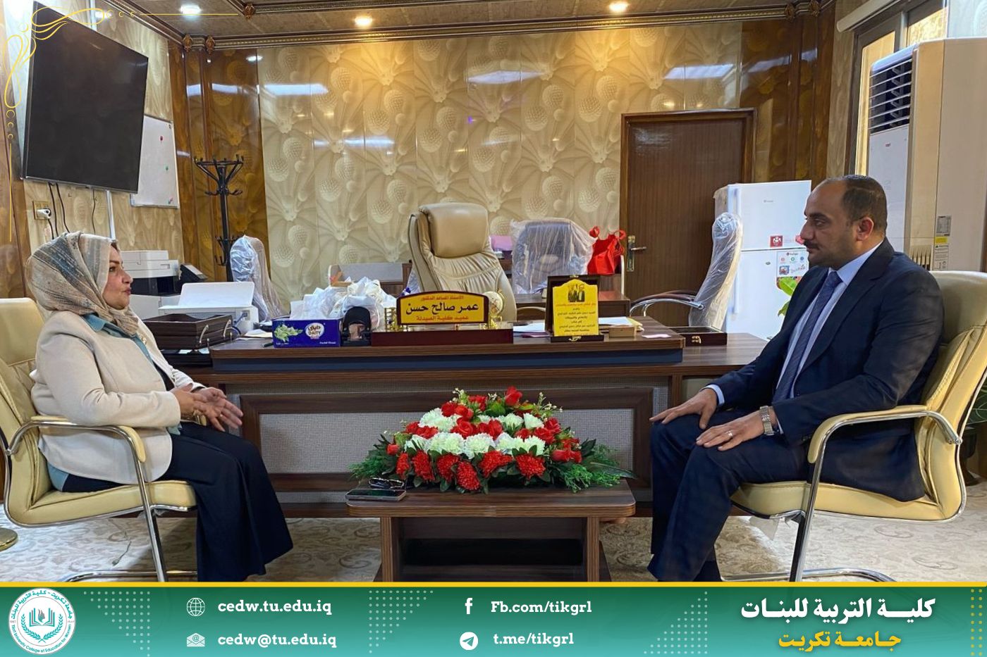من جانبه رحب السيد عميد كلية الصيدلة بهذه الزيارة شاكراً الدكتورة نجلاء المحمداوي على التهنئة ومشدداً على أهمية مواصلة التعاون والشراكة الأكاديمية بين الكليتين ومشيداً بمكانة كلية التربية للبنات في جامعة تكريت واعتزازه بها وتمنياته لها بمزيد من التألق والإبداع.