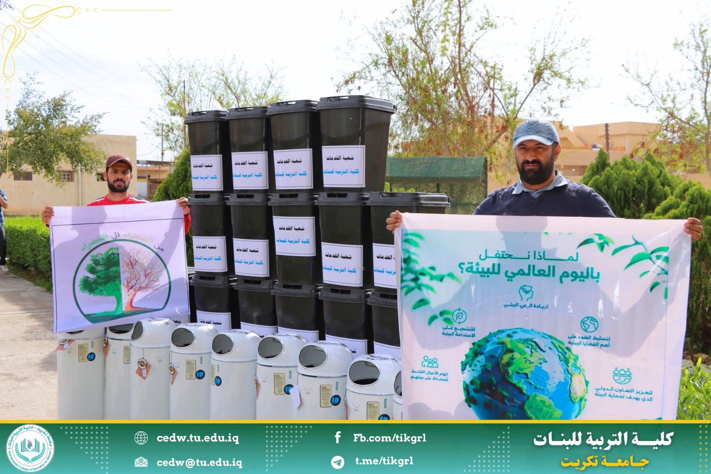 حيث شارك في الحملة السيدة معاون العميد للشؤون الأدارية الأستاذ المساعد الدكتورة سلمى خالد ياسين مع الفريق الطلابي الصديق للبيئة
