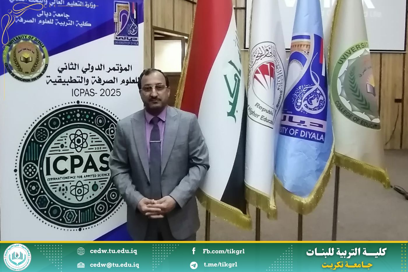 شارك الأستاذ الدكتور أحمد حسن رديني ( التدريسي في كلية التربية للبنات/ جامعة تكريت) في أعمال المؤتمر العلمي الدولي الثاني للعلوم الصرفة والتطبيقية المقام في كلية التربية للعلوم الصرفة - جامعة ديالى، تحت شعار ( الابتكار من أجل مستقبل مستدام )، وذلك عن بحثه الموسوم ( المعالجة الحيوية للتلوث العضوي باستخدام بكتيريا العصوية الرقيقة المُحددة جزيئيًا
