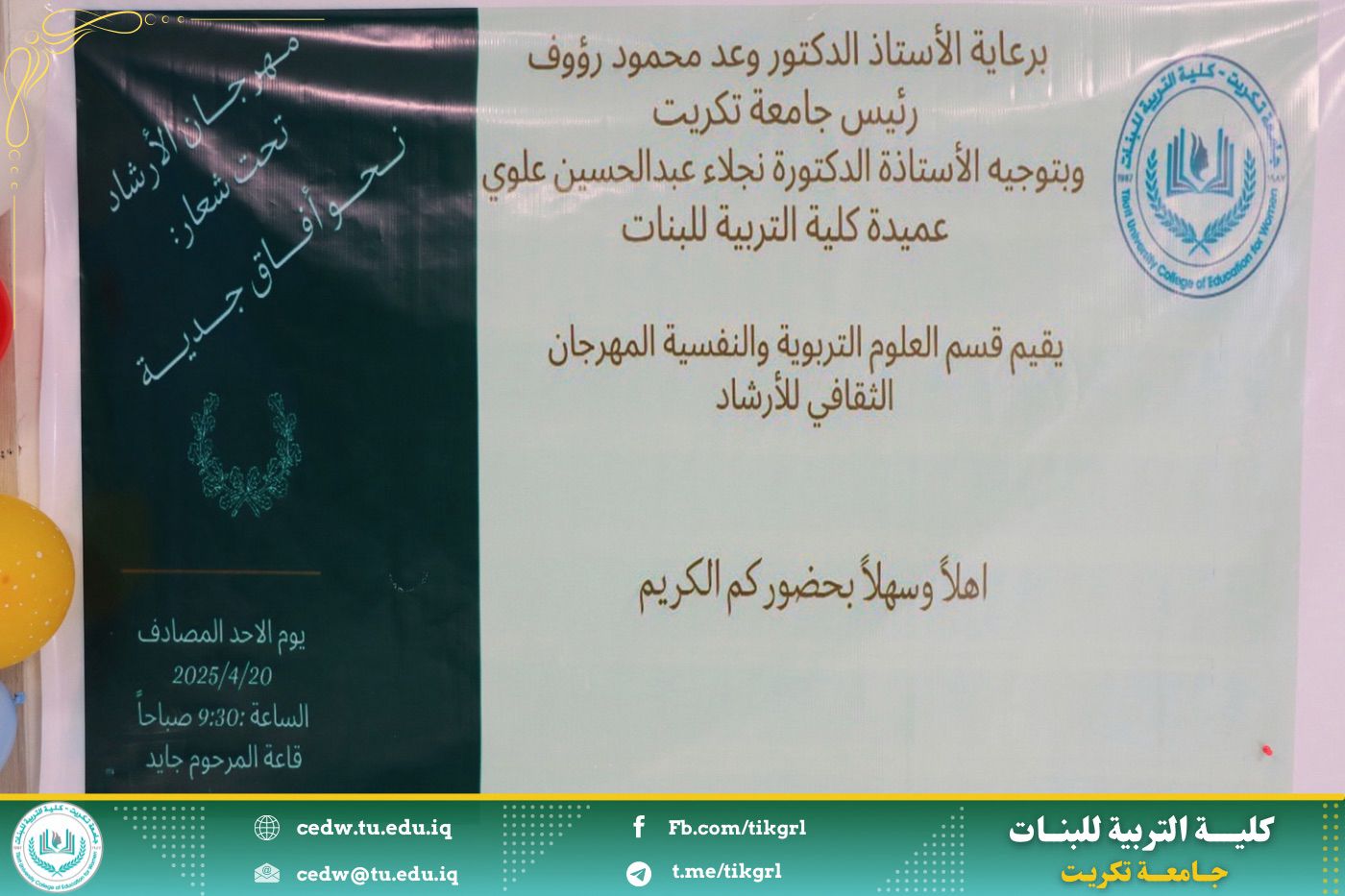 برعاية الأستاذ الدكتور وعد محمود رؤوف رئيس جامعة تكريت المحترم وبإشراف وحضور الأستاذ الدكتورة نجلاء عبدالحسين عليوي عميد كلية التربية للبنات المحترمة