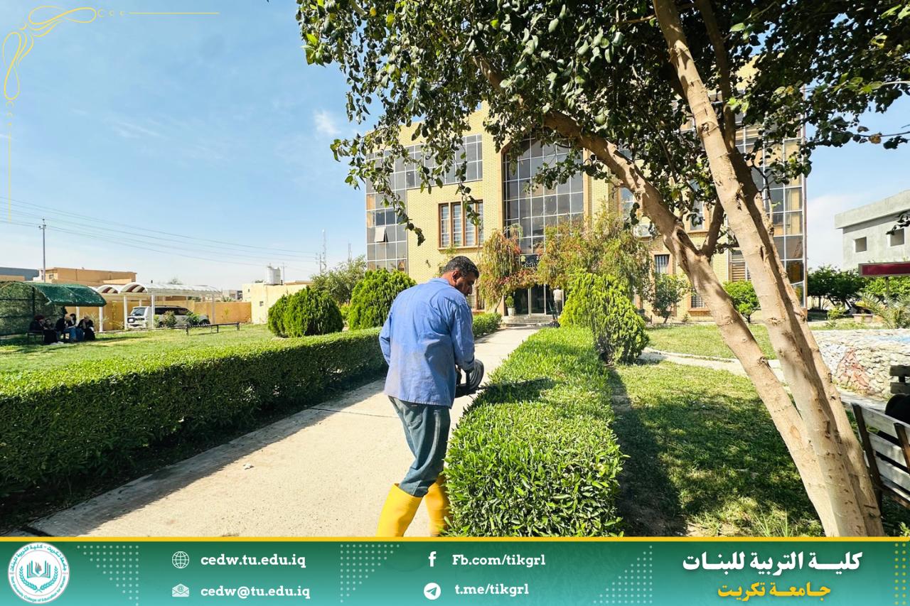 في إطار سعيها المستمر للحفاظ على جمالية البيئة الجامعية، باشرت شعبة الصيانة والخدمات في كلية التربية للبنات بحملة شاملة لتقليم الأشجار وتنظيم الحدائق المحيطة بأبنية الكلية. وتهدف هذه الحملة إلى تعزيز المظهر الجمالي للمساحات الخضراء وتهيئتها لاستقبال الطلبة والمنتسبين في بيئة نظيفة ومنظمة.