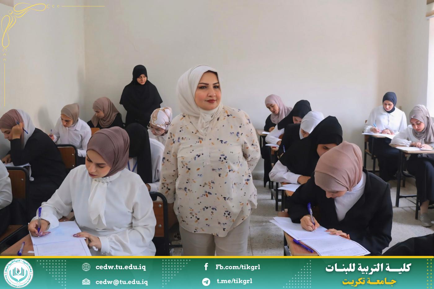 وشملت الجولة تفقد القاعات الامتحانية في مختلف اقسام الكلية، حيث اطلعت السيدة العميد على مستوى التنظيم داخل القاعات، وتوزيع الطالبات، وتوفر وسائل الراحة والتهوية، فضلاً عن توفر المستلزمات الأساسية من أوراق وأقلام ومراقبين، مما يعزز من بيئة امتحانية مناسبة وآمنة.