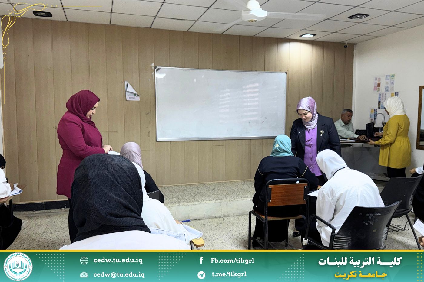 وأشادت السيدتان بحُسن التنظيم والانضباط العالي الذي أبدته الملاكات التدريسية والإدارية، مشيرتين إلى أهمية تظافر الجهود لإنجاح الامتحانات وتذليل أي عقبات قد تواجه الطالبات، بما يعكس التزام الكلية برسالتها الأكاديمية وسعيها الدائم نحو التميز