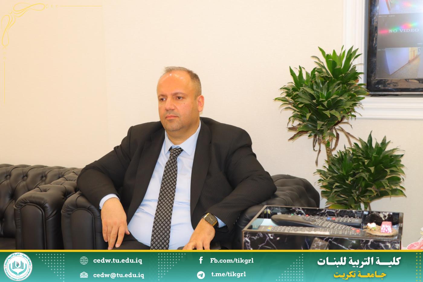 وكان في استقباله السيدة عميد كلية التربية للبنات الأستاذ الدكتورة نجلاء عبدالحسين عليوي، والسيدتين معاونتي العميد للشؤون العلمية والإدارية في الكلية، حيث تم عقد اجتماع تنسيقي لمناقشة آلية إدخال البيانات وتجاوز التحديات التقنية والإدارية المصاحبة لتطبيق النظام.