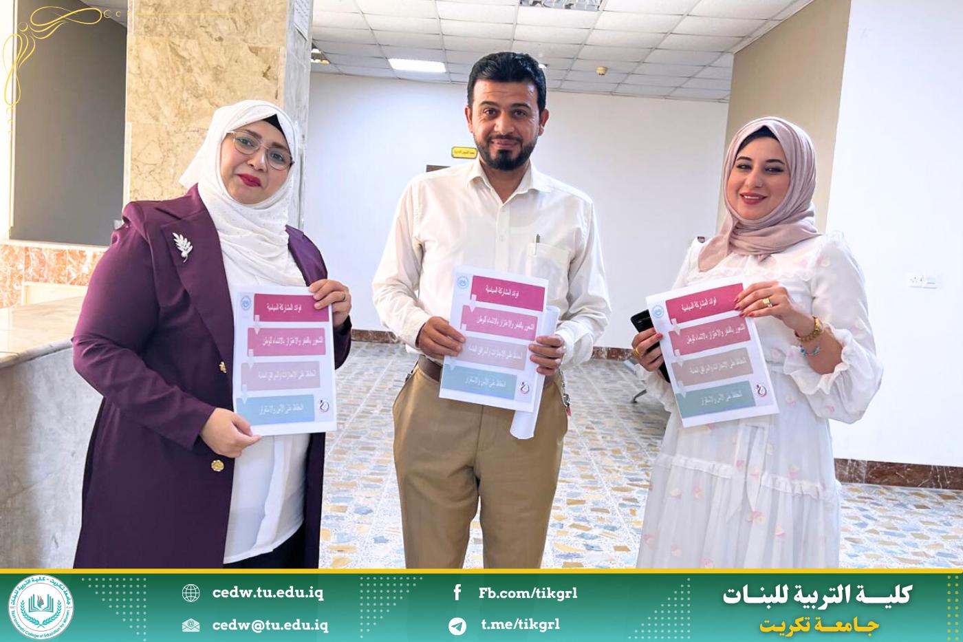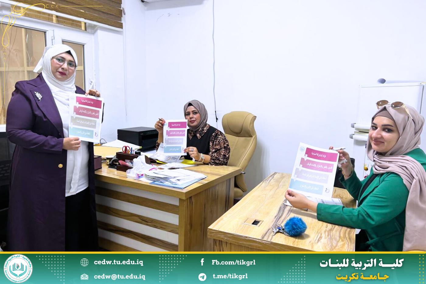 تنفيذاً لتوجيهات وزارة التعليم العالي والبحث العلمي، نظّمت وحدة شؤون المرأة في كلية التربية للبنات، اليوم الأربعاء الموافق 23 /7/ 2025، حملة توعوية تطوعية حملت شعار “السياسة مسؤوليتنا.. والمشاركة حقنا”، واستهدفت موظفي وموظفات الكلية من تدريسيين وتدريسيات وطلبة، بهدف تعزيز الوعي المجتمعي بأهمية المشاركة في العملية الانتخابية.