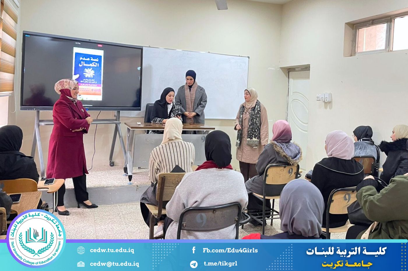 نظّم قسم اللغة الإنكليزية، في كلية التربية للبنات وبإشراف الأستاذ الدكتورة أوفى حسين محمد، جلسة قراءة كتاب بعنوان «نعمة عدم الكمال»، وذلك يوم الأحد الموافق 21 / 12 / 2025 بحضور أعضاء اللجنة الثقافية وطالبات المرحلة الرابعة في قسم اللغة الإنكليزية.