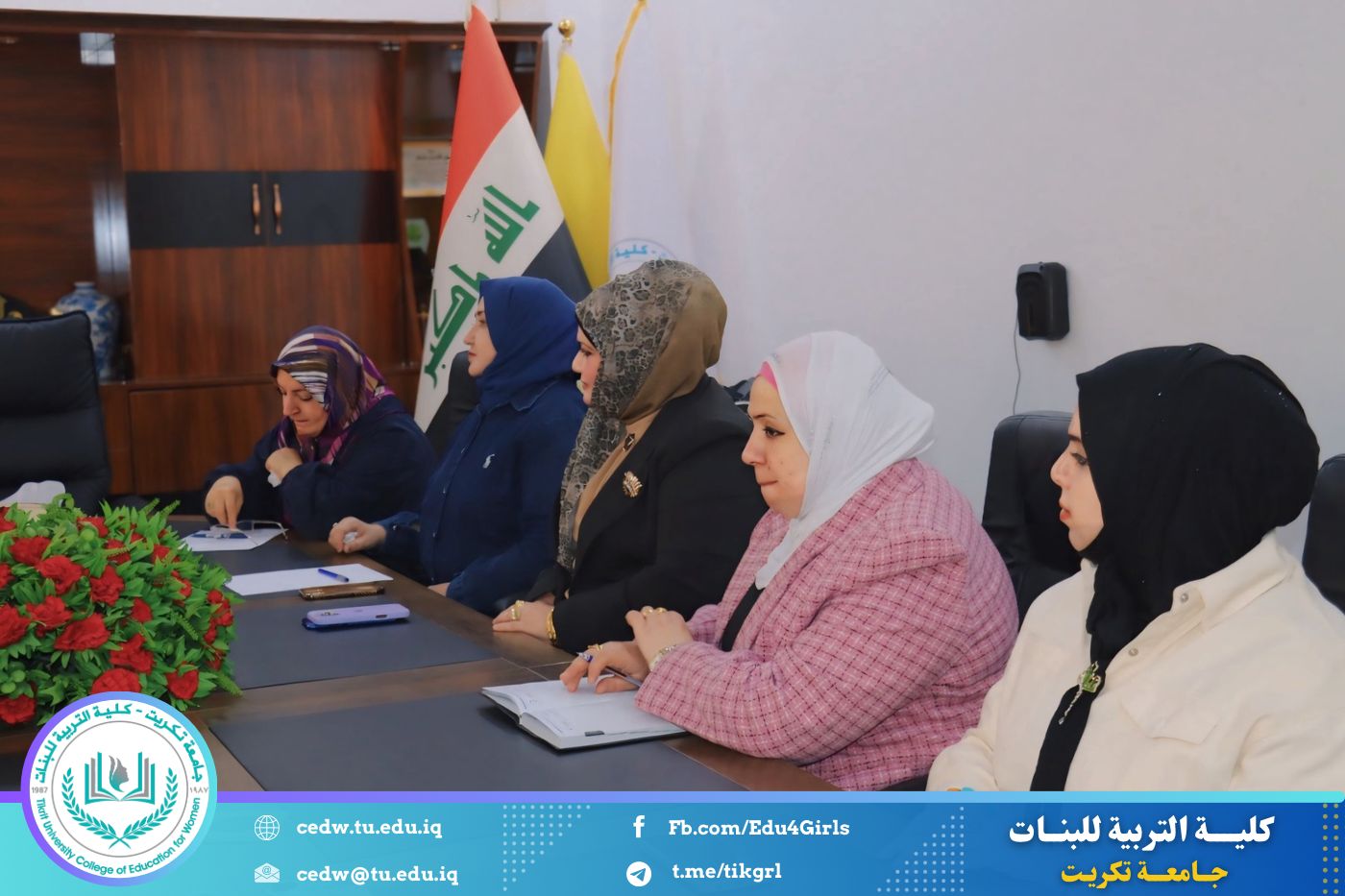 عقدت عضوات وحدة شؤون المرأة في كلية التربية للبنات اجتماعاً موسعاً تنفيذاً لتوجيهات السيدة عميد الكلية، الاستاذ الدكتورة نجلاء عبدالحسين عليوي، في اليوم الاثنين الموافق 24/ 11/ 2025 ، وذلك بهدف مناقشة خطة العمل الخاصة بنشاطات العام الدراسي كاملاً إضافة إلى بحث الاستعدادات الخاصة بـ الأسبوع الريادي الذي تقيمه الكلية سنوياً.