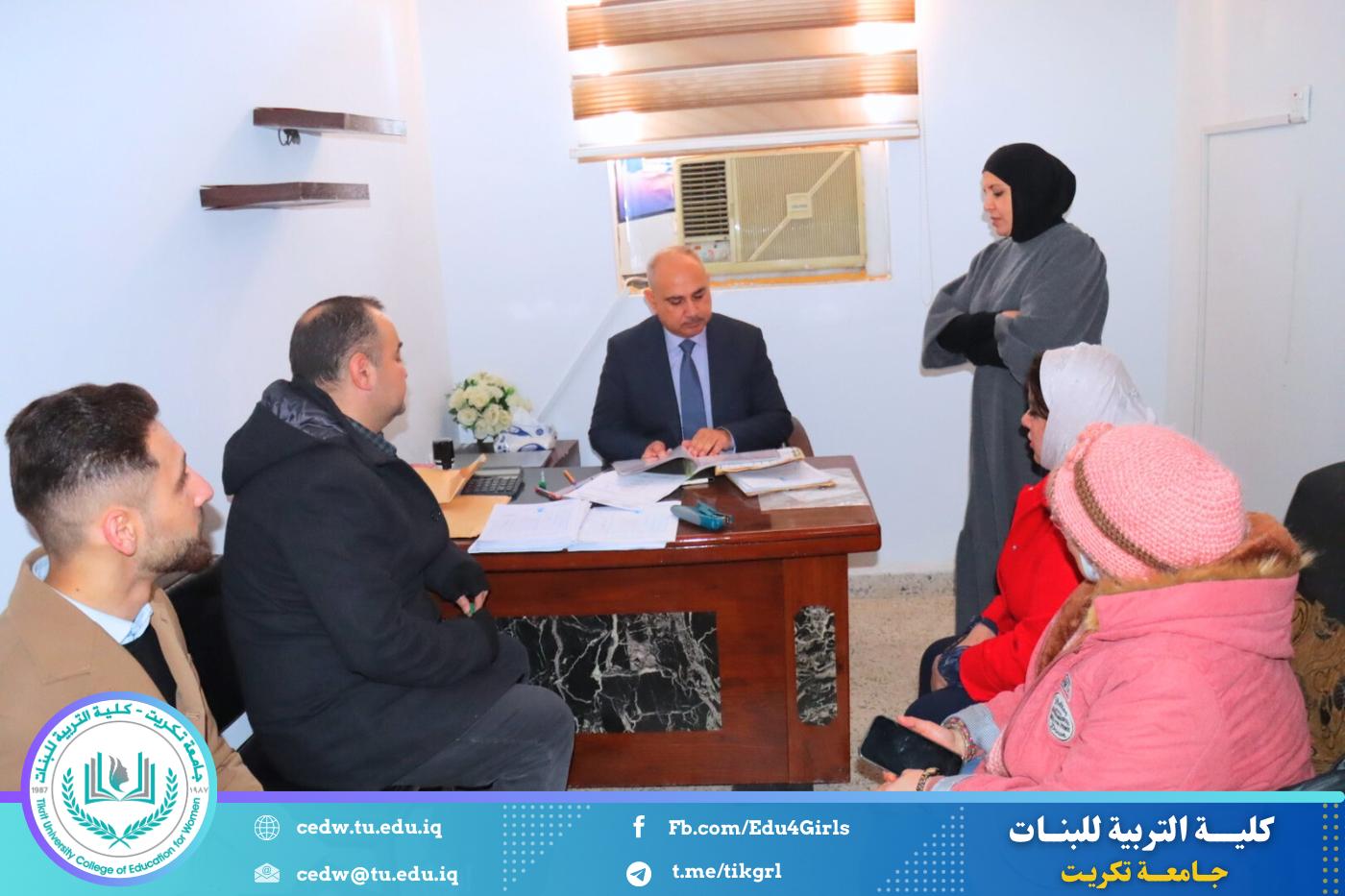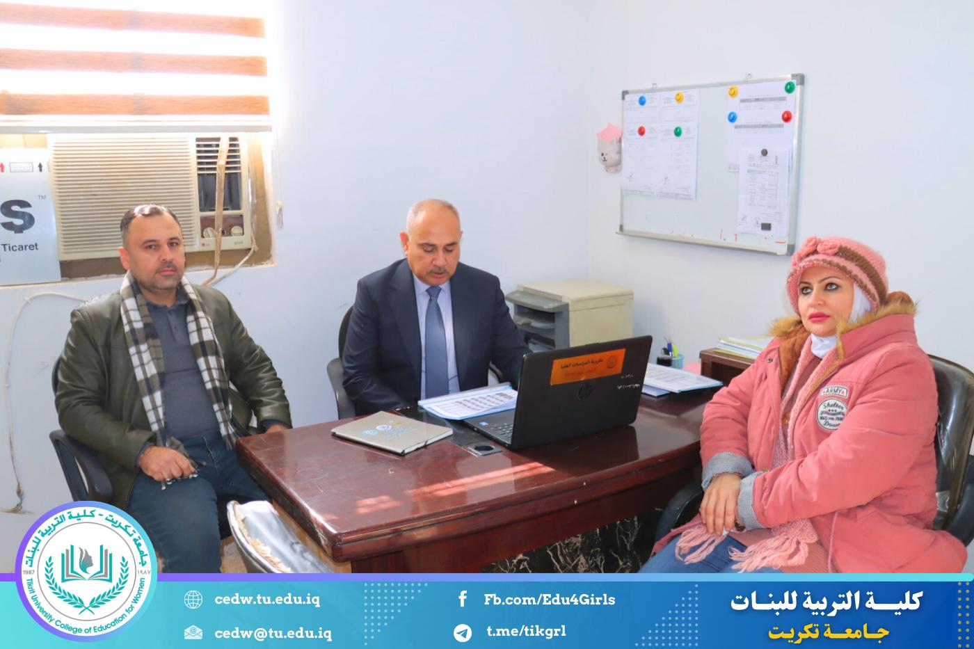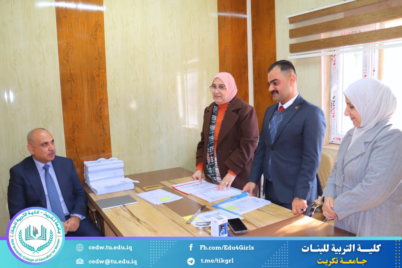 استقبلت كلية التربية للبنات في جامعة تكريت، صباح يوم الثلاثاء الموافق ٣٠ / ١٢ / ٢٠٢٥، اللجنة المركزية المكلفة بمتابعة سير امتحانات طلبة الدراسات العليا للعام الدراسي ٢٠٢٤–٢٠٢٥، ضمن الجهود المستمرة للجامعة لضمان الالتزام بالمعايير الامتحانية وتوفير بيئة أكاديمية منظمة ومناسبة للطلبة.