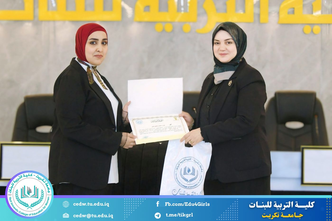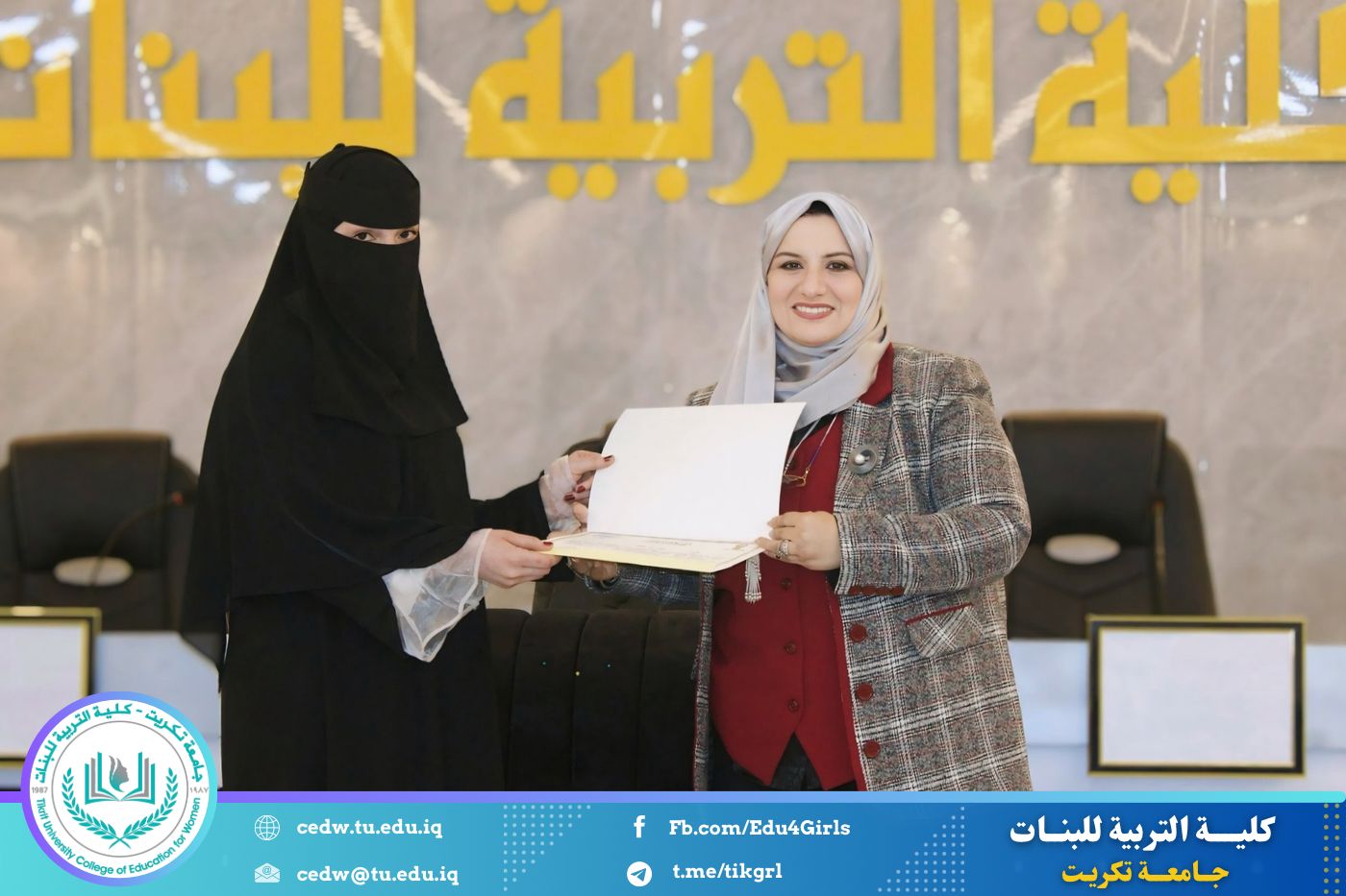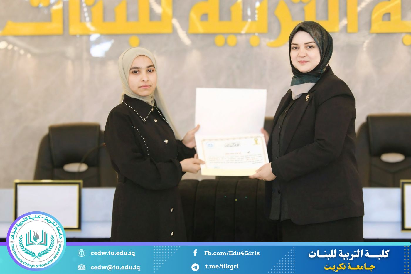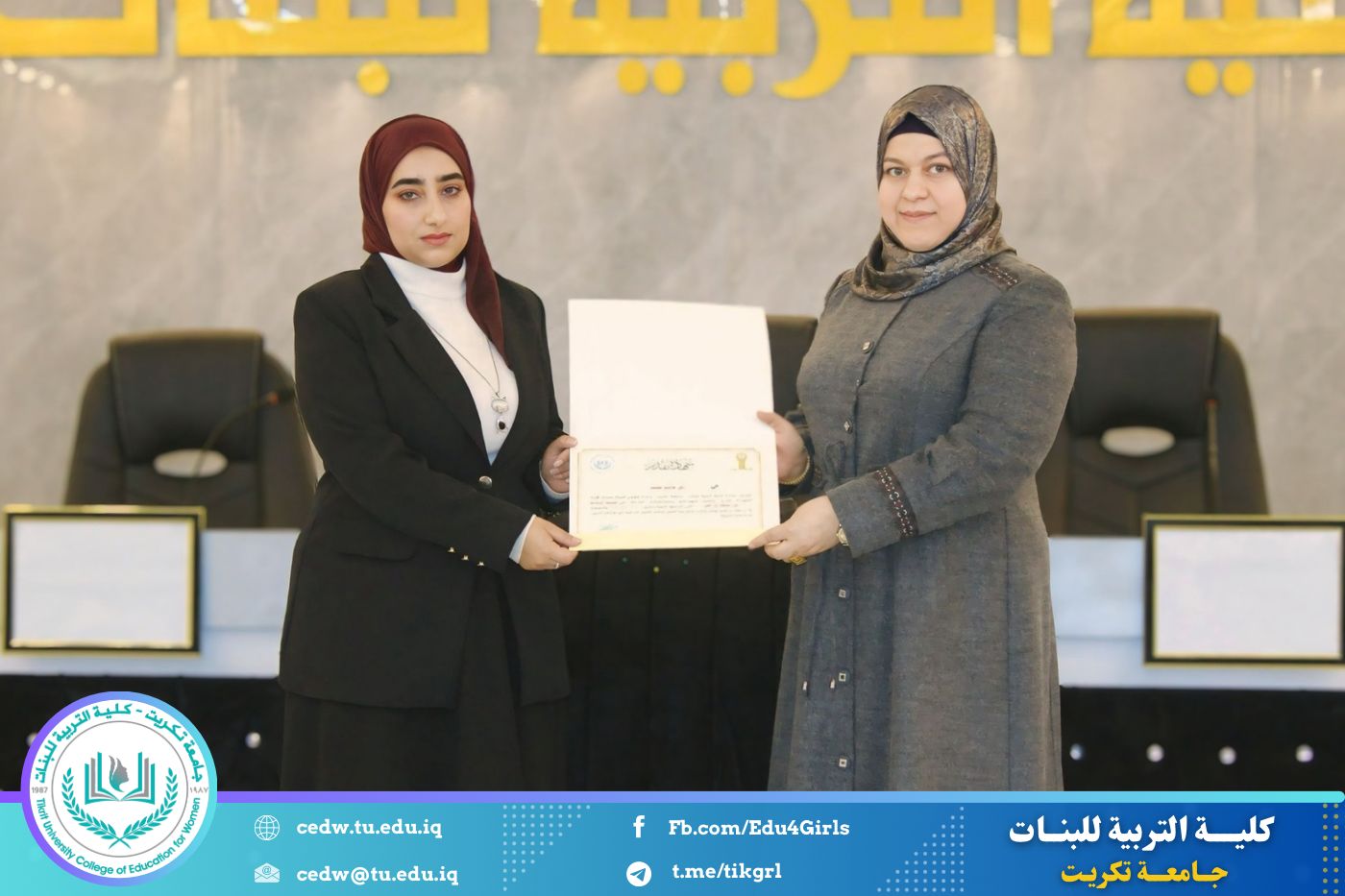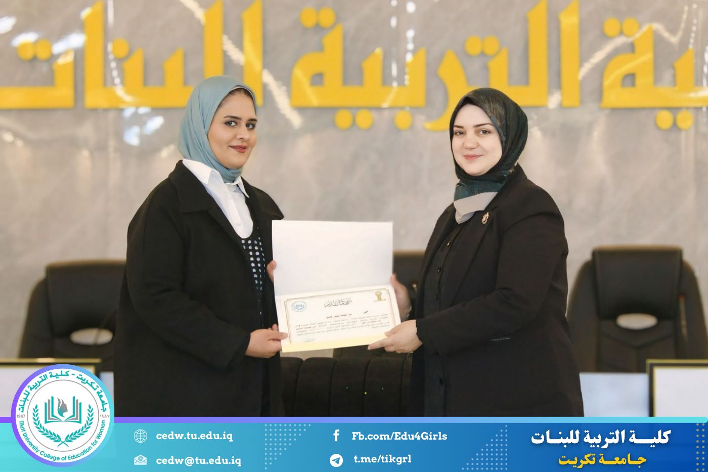 انسجامًا مع توجهات كلية التربية للبنات في جامعة تكريت الهادفة إلى دعم الابتكار وترسيخ ثقافة الريادة في الوسط الجامعي، نظّمت وحدتا شؤون المرأة والتأهيل والتوظيف والمتابعة وبالتعاون مع الأقسام الإنسانية في الكلية، مهرجانًا احتفاليًا صباح اليوم الاثنين الموافق ٨ كانون الأول ٢٠٢٥، على رحاب قاعة المرحوم جايد زيدان، لتكريم الطالبات المشاركات والفائزات في مسابقة الأسبوع الريادي، والذي جاء تحت شعار: