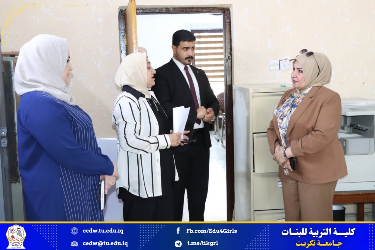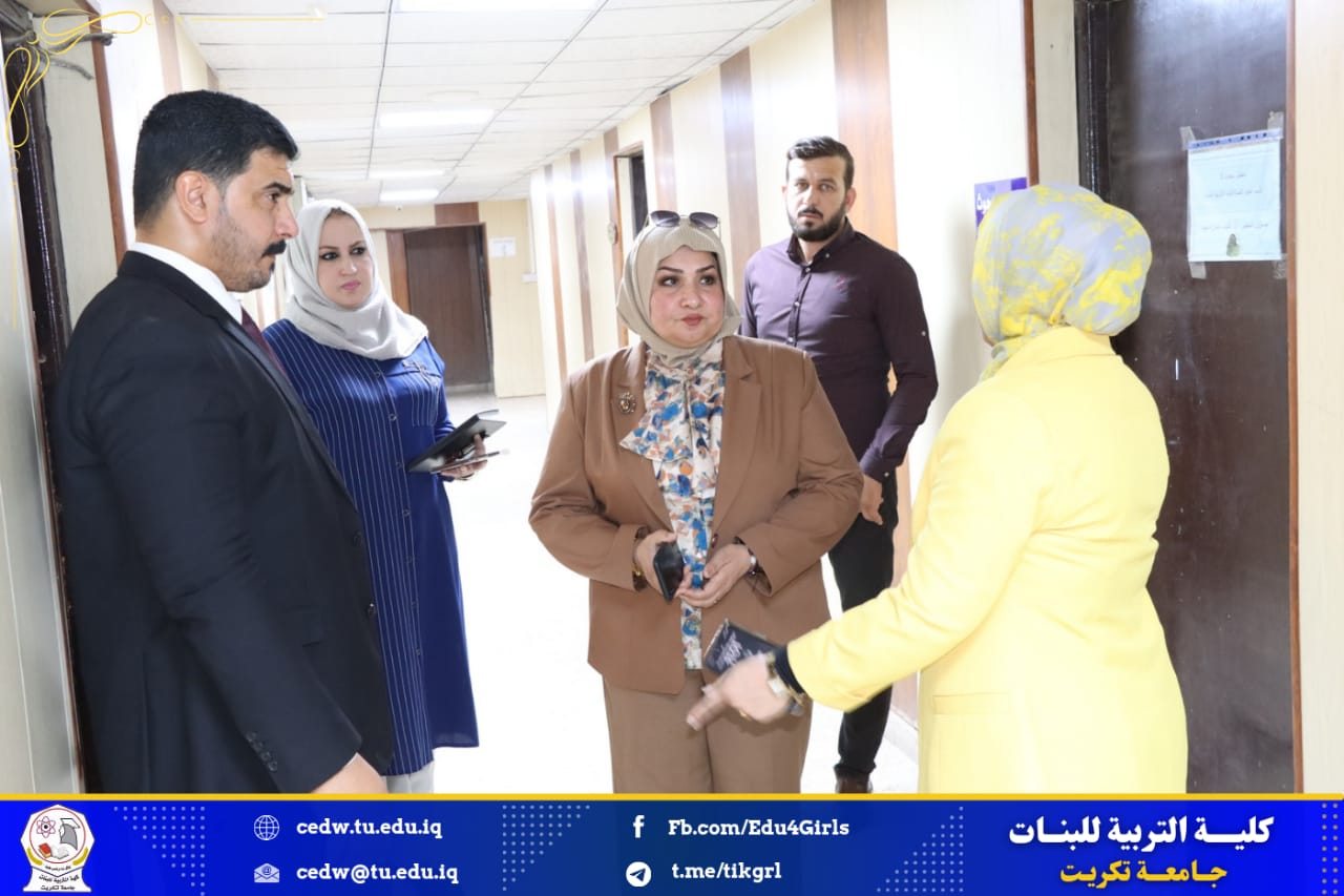 اجرت السيدة عميد كلية التربية للبنات الاستاذ الدكتورة نجلاء عبدالحسين عليوي جولة تفقدية للقاعات والمختبرات في الاقسام العلمية للكلية وذلك في يوم الخميس الموافق 29/ 3/ 2024 وكان برفقتها السيدة معاون العميد للشؤون الادارية الاستاذ المساعد الدكتورة سلمى خالد ياسين