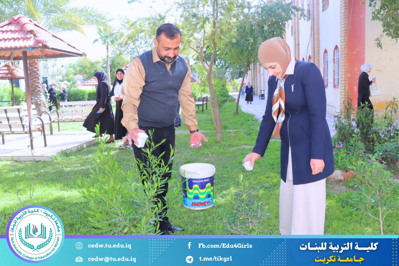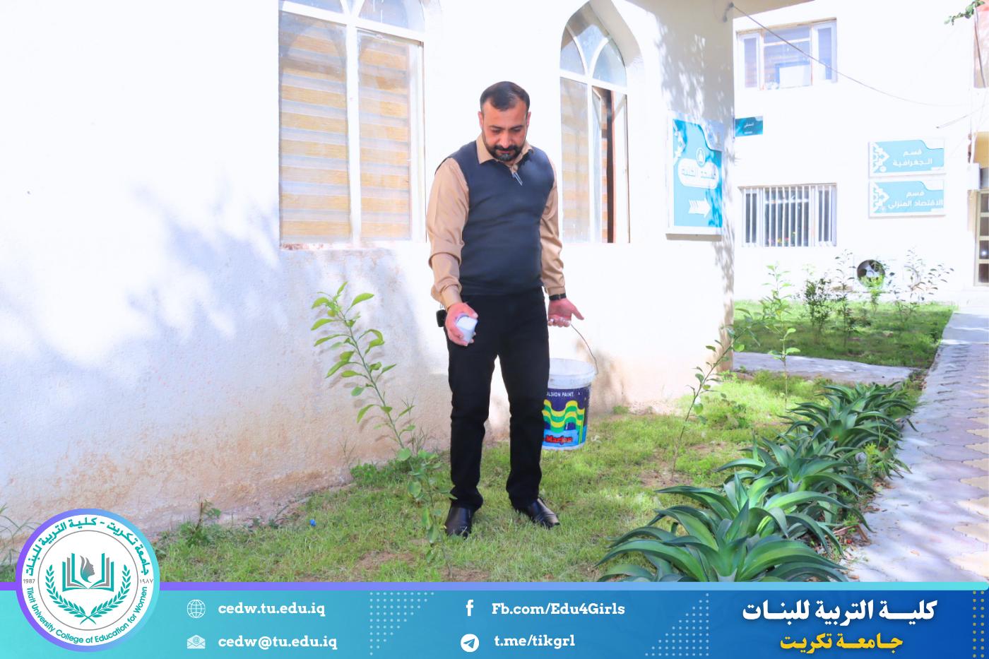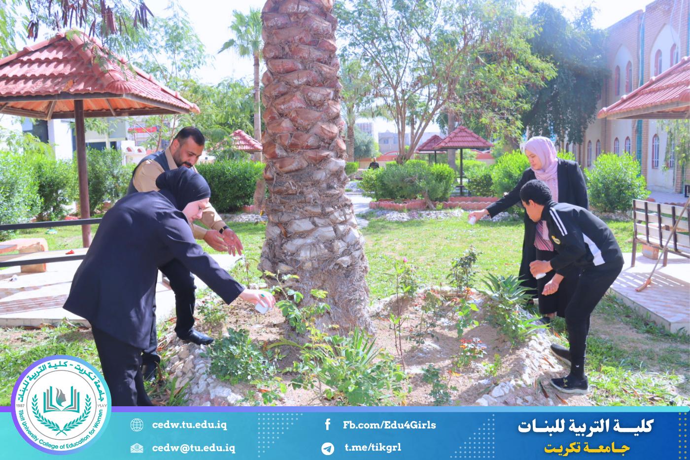 ضمن إطار الاهتمام بالبيئة الجامعية وتعزيز الجوانب التطبيقية لدى الطلبة، نظم قسم الجغرافية في كلية التربية للبنات فعالية ميدانية لتسميد حدائق الكلية باستخدام سماد اليوريا، بمشاركة فاعلة من تدريسيي القسم وطالباته.