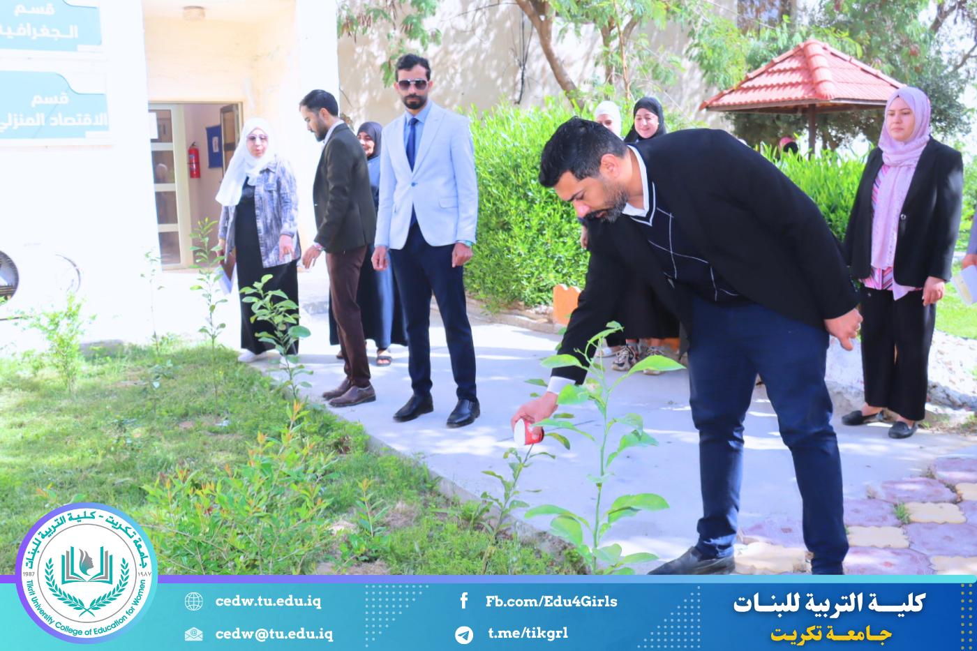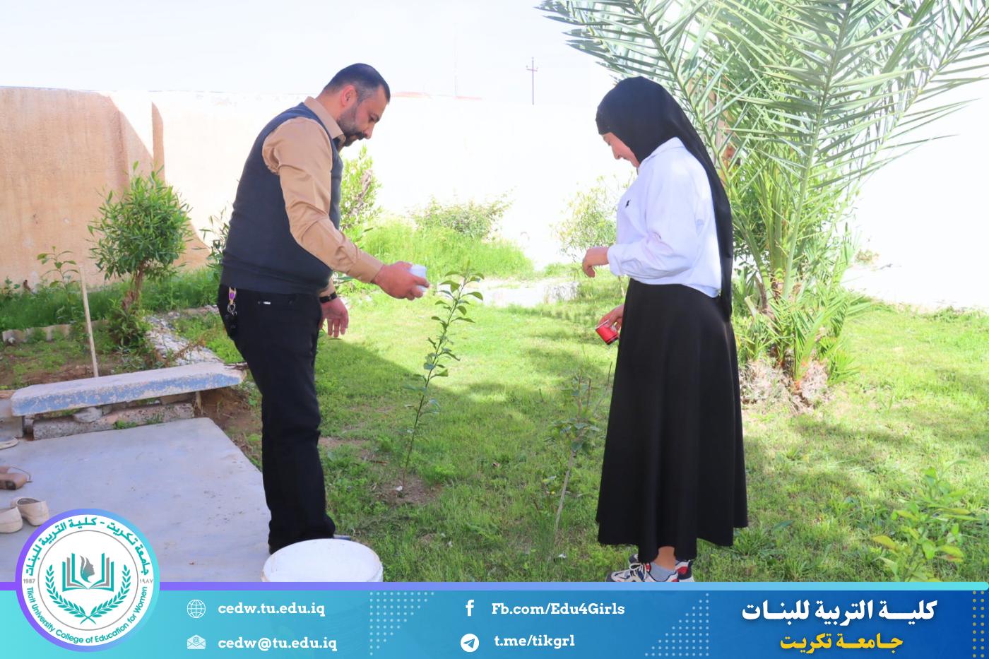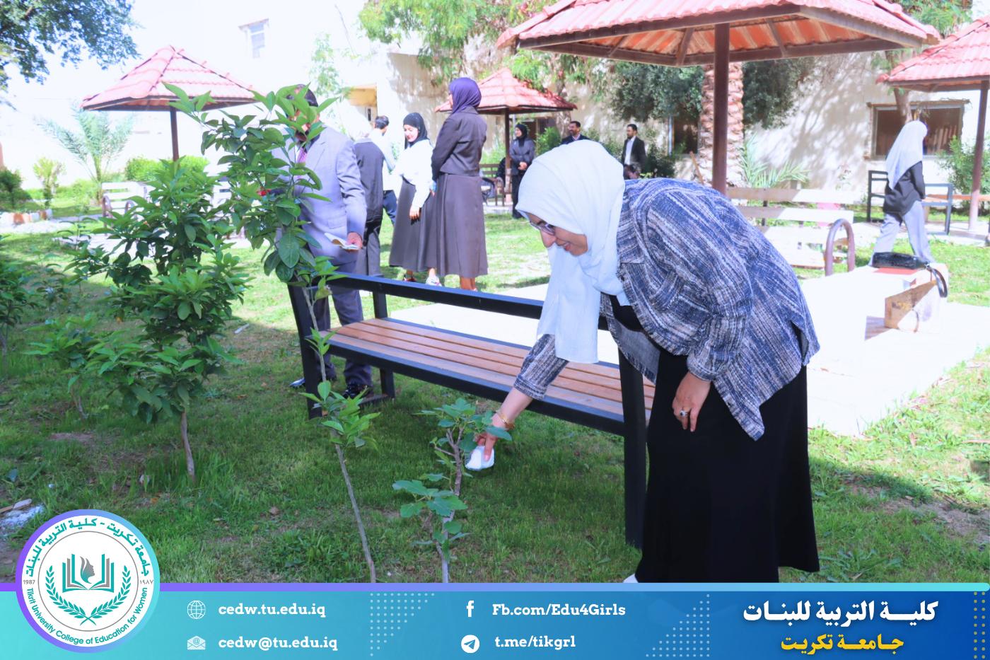ضمن إطار الاهتمام بالبيئة الجامعية وتعزيز الجوانب التطبيقية لدى الطلبة، نظم قسم الجغرافية في كلية التربية للبنات فعالية ميدانية لتسميد حدائق الكلية باستخدام سماد اليوريا، بمشاركة فاعلة من تدريسيي القسم وطالباته.