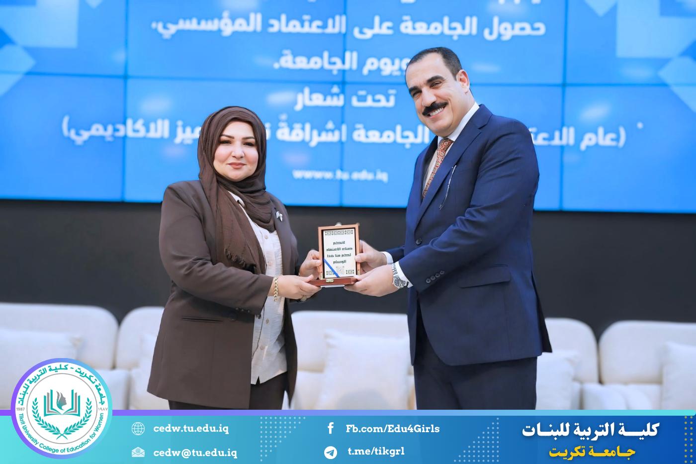ويأتي هذا التكريم تأكيداً على ما تبذله عمادة كلية التربية للبنات من جهود متميزة أسهمت في تحقيق هذا الإنجاز النوعي، وترسيخ ثقافة الجودة والاعتماد، بما يواكب تطلعات جامعة تكريت نحو التميز الأكاديمي والريادة في التعليم العالي.